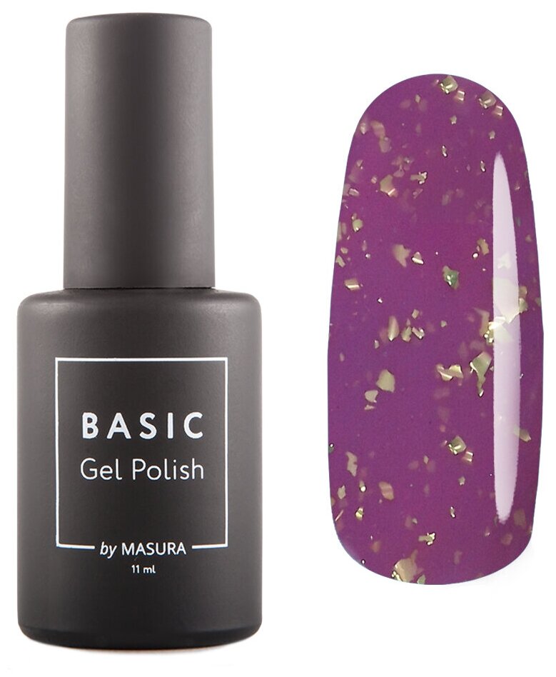 MASURA, Гель-лак BASIC Горная Вершина, 11 мл (розово-сиреневый, с серебристыми микроблестками и золотистой фольгой, полупрозрачный.)