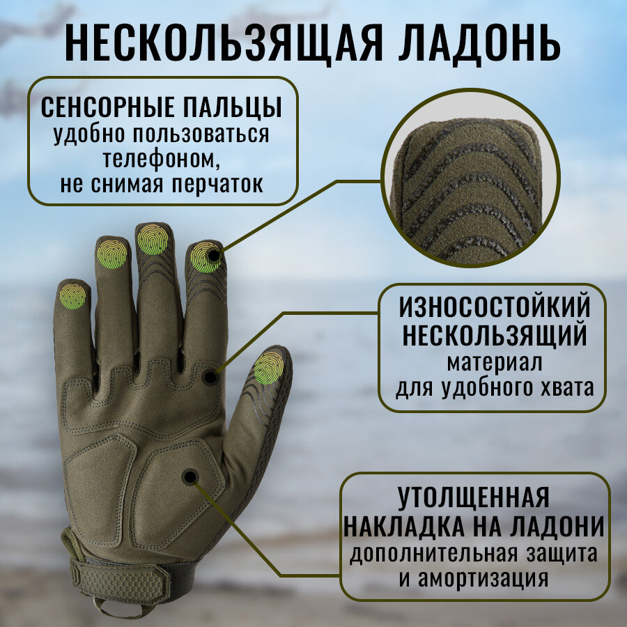 Перчатки тактические мужские Armsport, защитного цвета, М