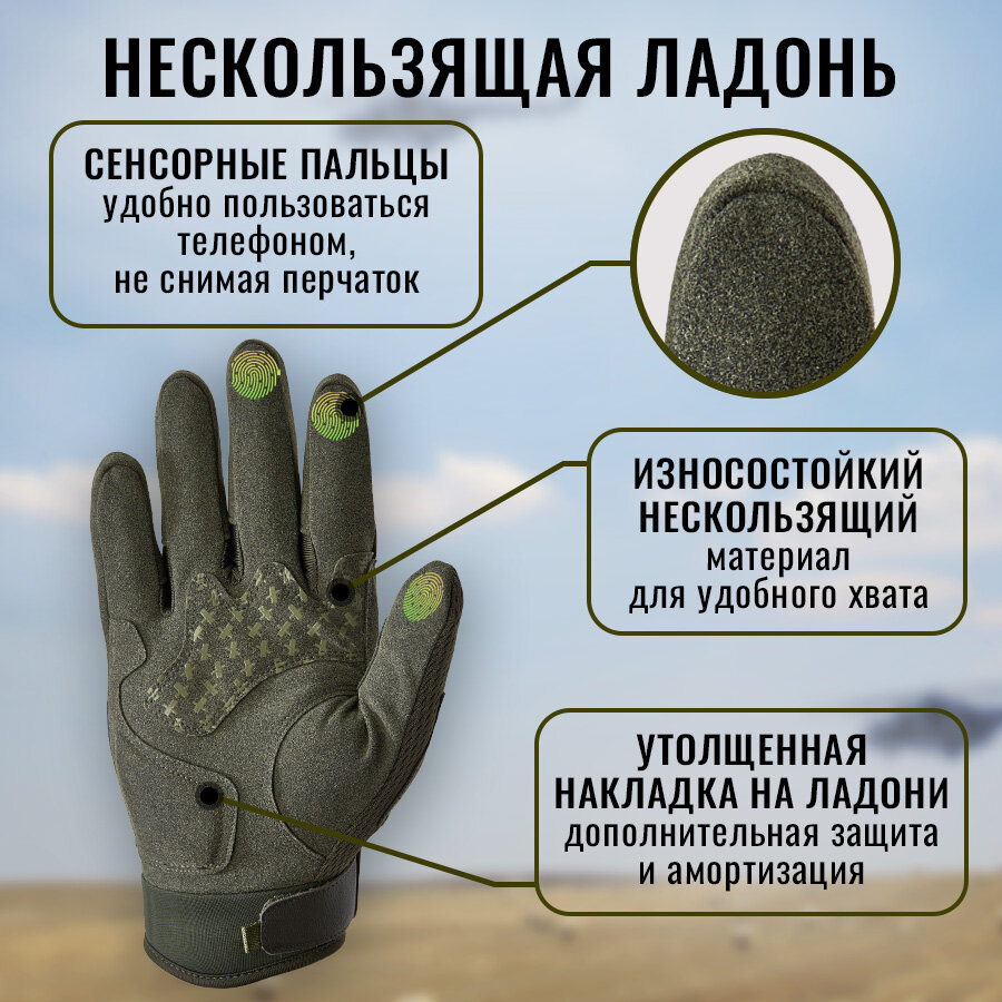Перчатки тактические мужские Armsport, защитного цвета, М