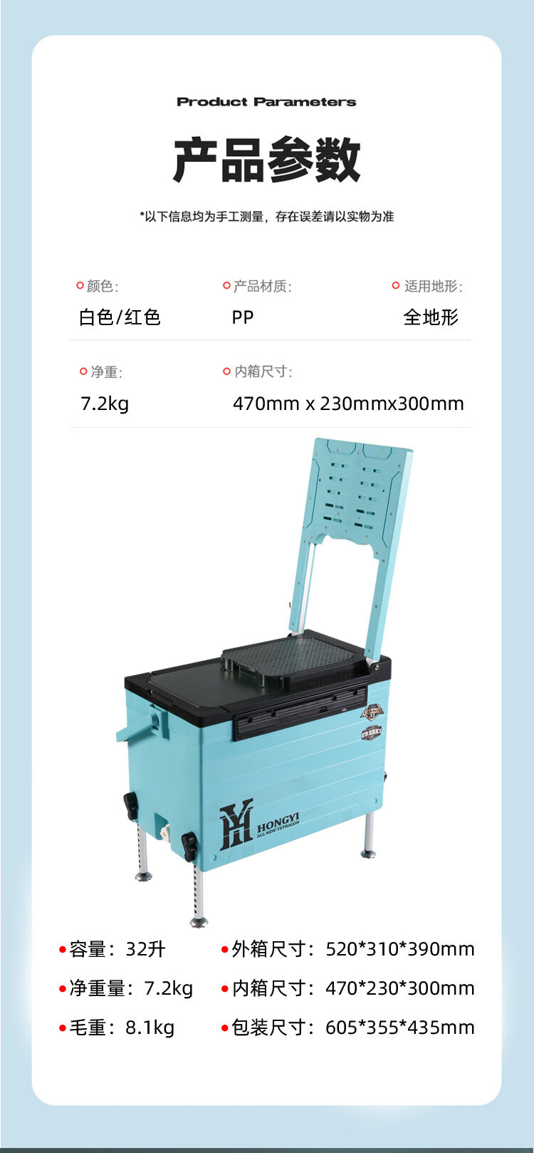 Купить Рыболовный ящик Hongyi, многофункциональный, закаленный, с поворотной рамой, 32x32x25 см