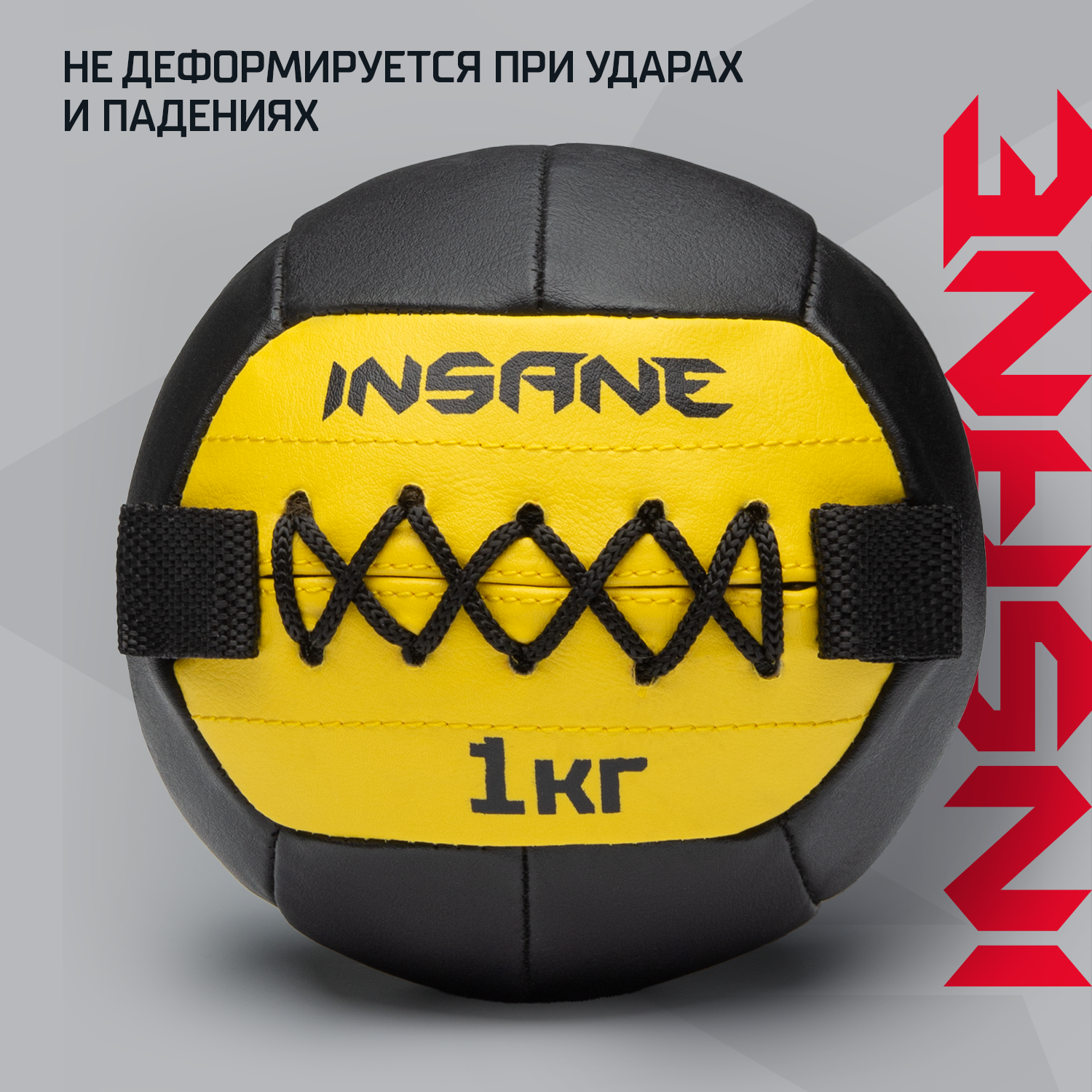 Медбол спортивный для фитнеса Insane IN24-WB100, вес 1 кг, цвет желтый