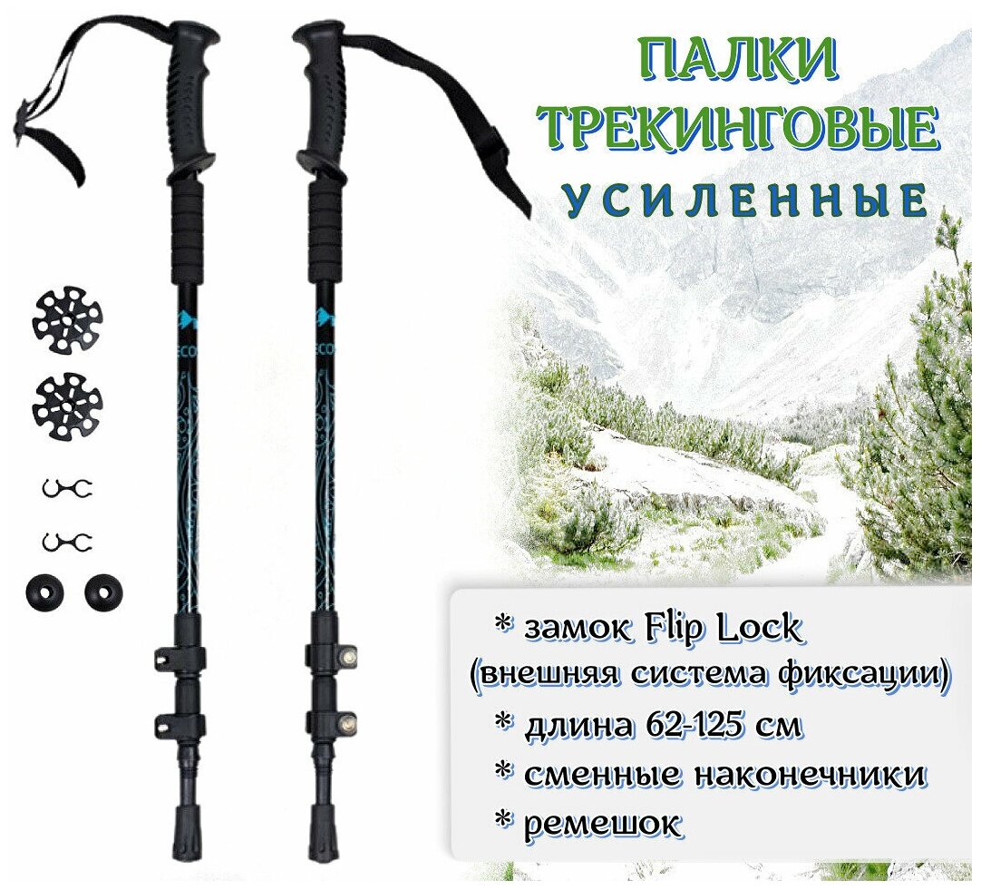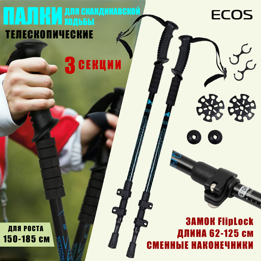 Трекинговые палки складные/ Палки для скандинавской ходьбы ECOS Trekking poles алюминиевые, замок flip-lock, ремешок, чёрные интересное: