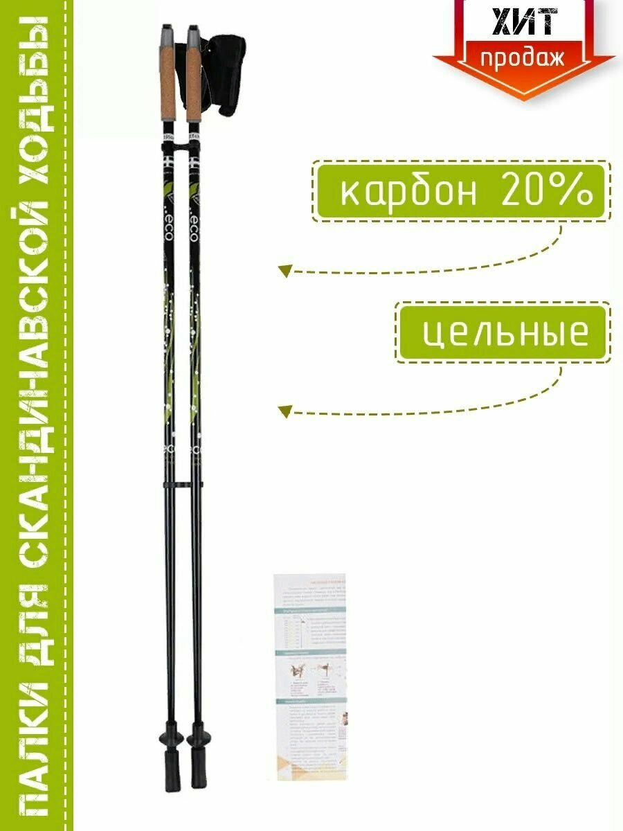 Скандинавские палки Finpole ECO, для ходьбы, 20% carbon, 120см, черные/зеленые