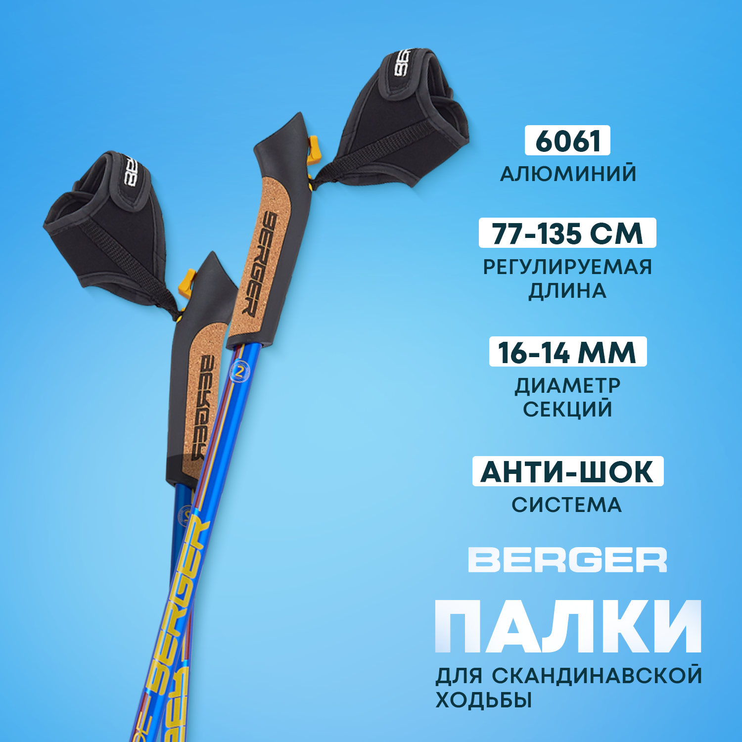 Палки для скандинавской ходьбы BERGER Blade 2-секционные, 77-135 см, синий/красный/желтый интересное: