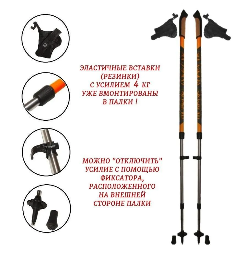 Палки для скандинавской ходьбы с усилием Elastic Energy ЕЕ4-orange, оранжевые (сопротивление 4кг) интересное: