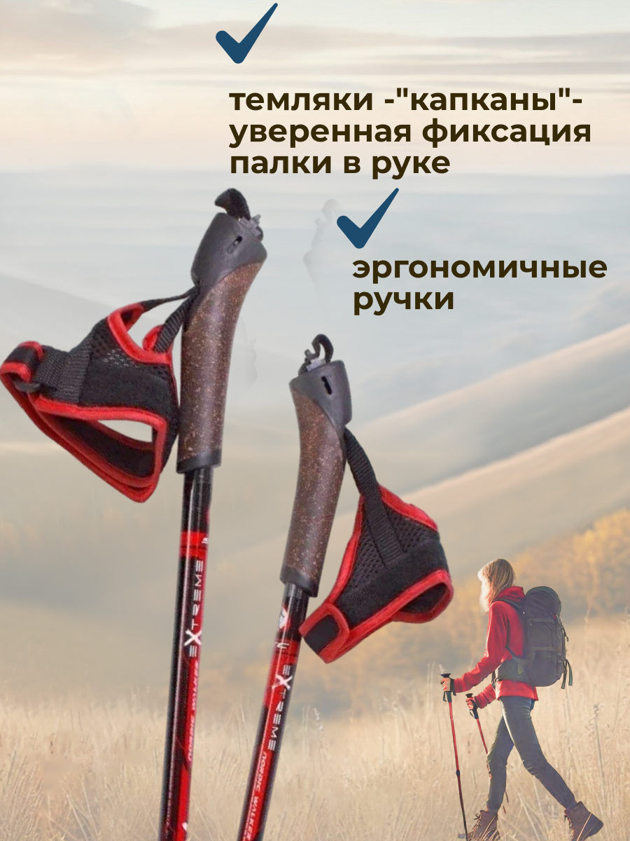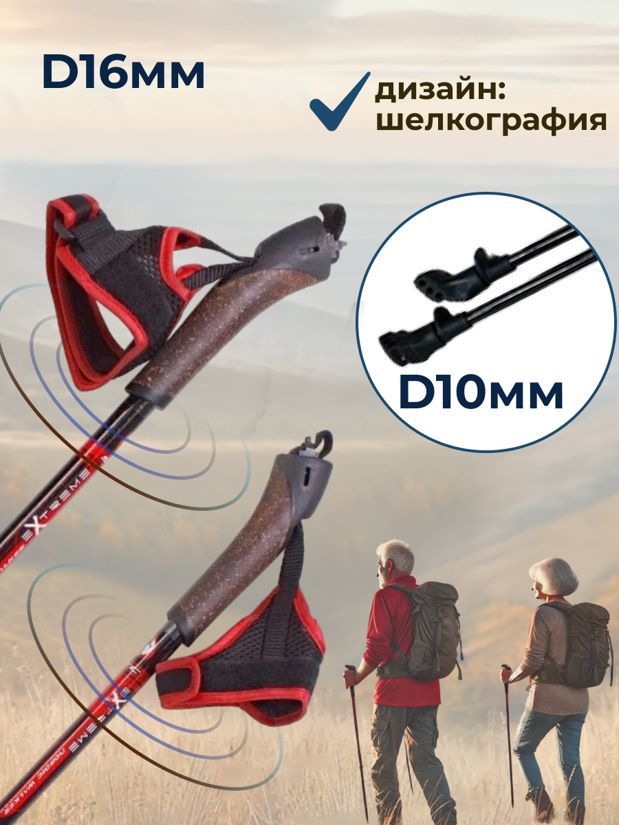 Палки для скандинавской ходьбы STC Extreme Red 100% стекловолокно, 125 интересное: