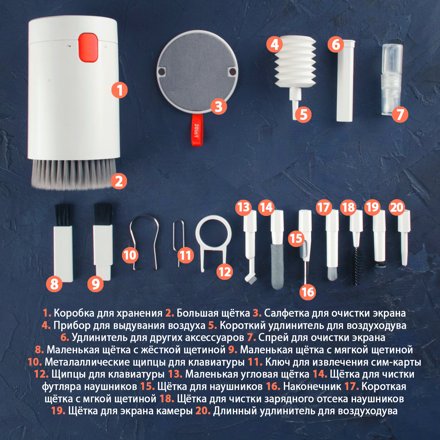 Набор щеток для чистки телефонов, клавиатур и фототехники 20 в 1 интересное: