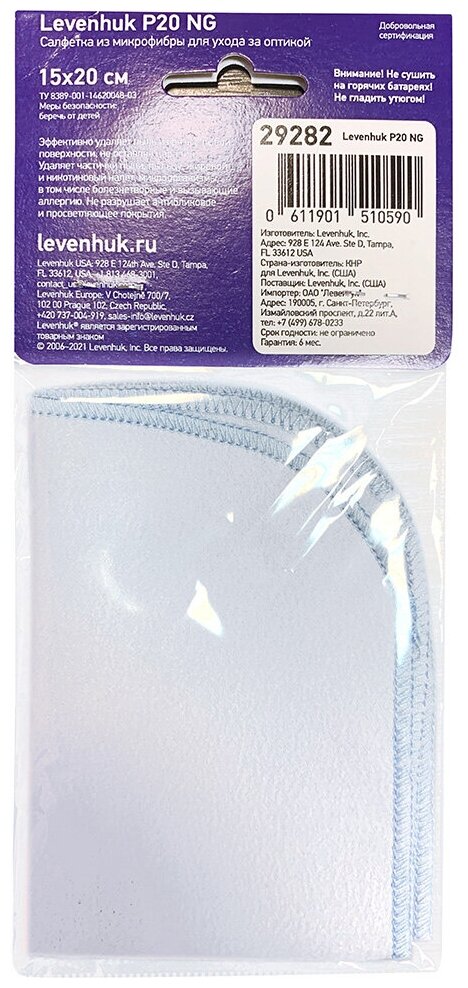 Салфетка для ухода за оптикой Levenhuk P20 NG 15x20 см интересное:
