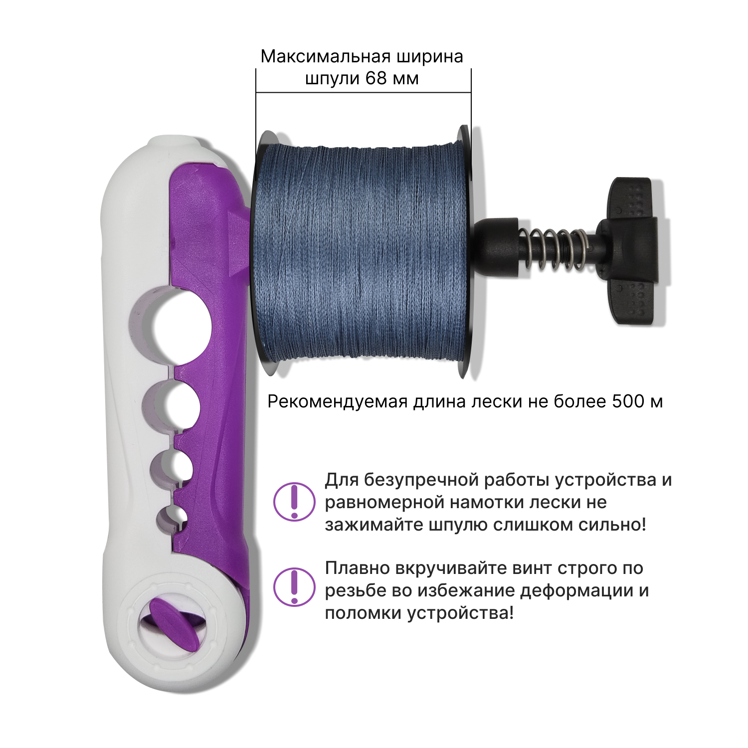 Купить Намотка лески на катушку/ устройство для намотки лески, 16см, фиолетово-белый