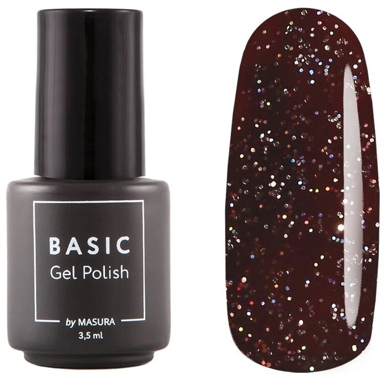 Купить Masura, Гель-лак BASIC Кофе в Постель, 3,5 мл (бурый, с золотистыми и голографическими микроблестками, плотный.)