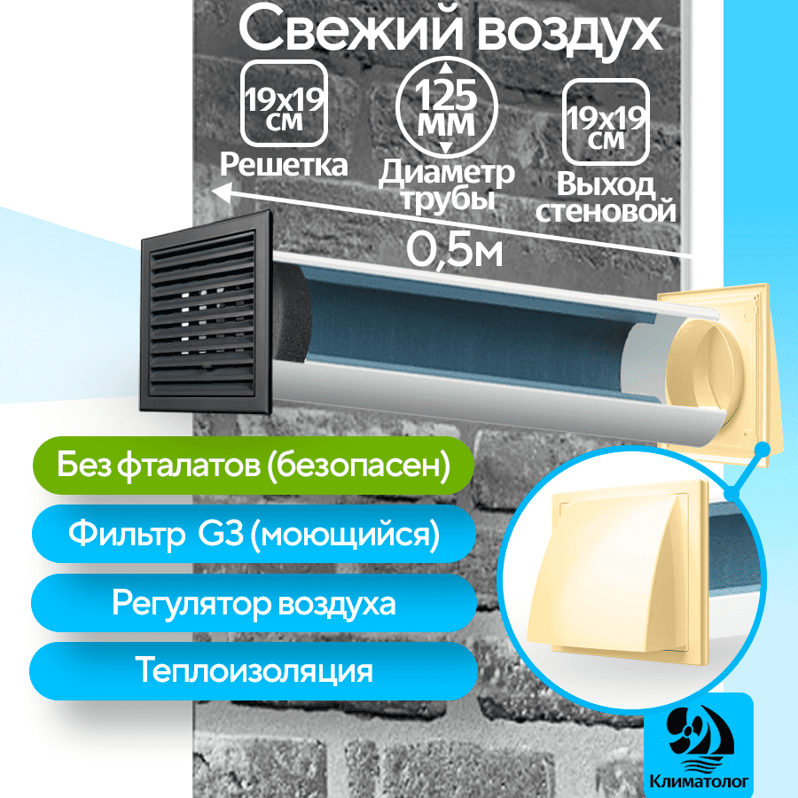 СохранитьПриточный клапан вентиляционный, КП-2005-04-GI, диаметр 125мм, длина 0,5м интересное:
