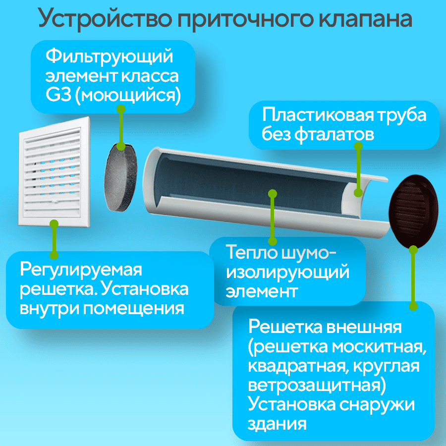 СохранитьПриточный клапан вентиляционный, КП-2005-03-WB, диаметр 125мм, длина 0,5м интересное: