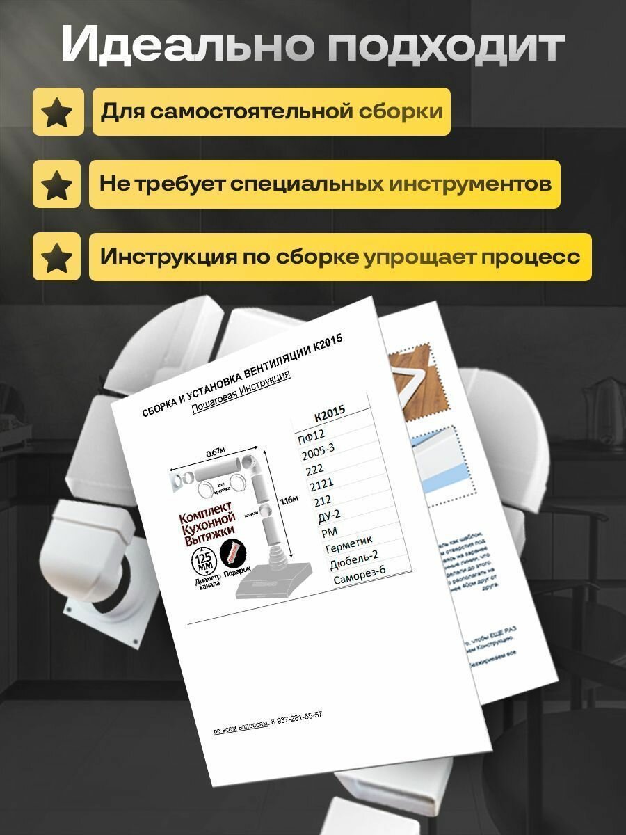 Комплект кухонной вытяжки из ПВХ d125мм, длинна 2.34м, КЧ2020