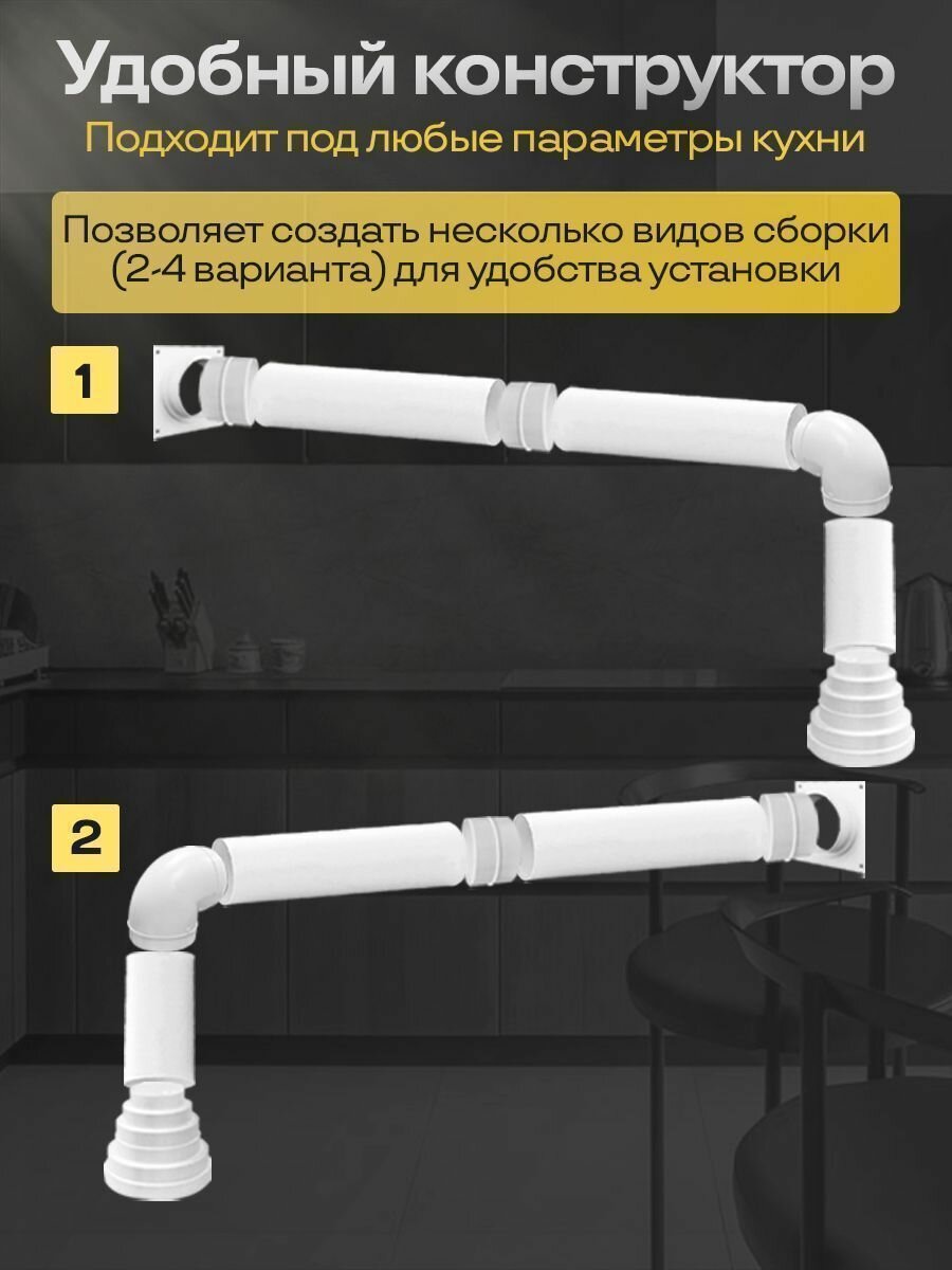 Комплект кухонной вытяжки из ПВХ d100мм, длинна 2.24м, К1020