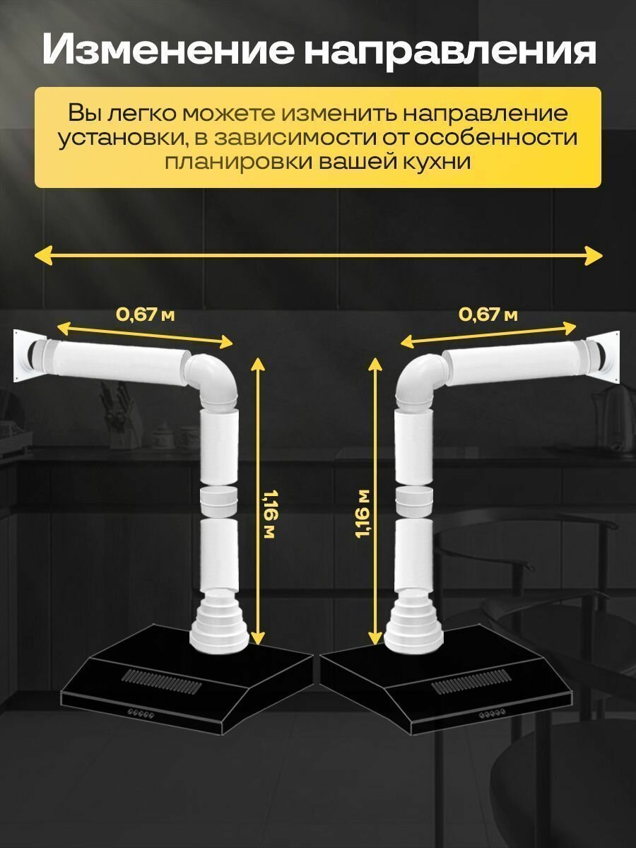 Комплект кухонной вытяжки из ПВХ d100мм, длинна 1.74м, К1015