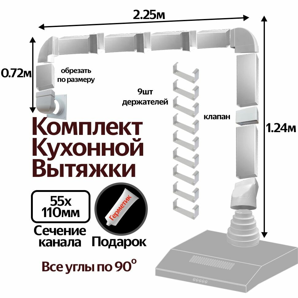 Комплект воздуховодов для кухонной вытяжки из ПВХ 55х110мм, плоские каналы, длинна 2.26м, КЧ5020ПС
