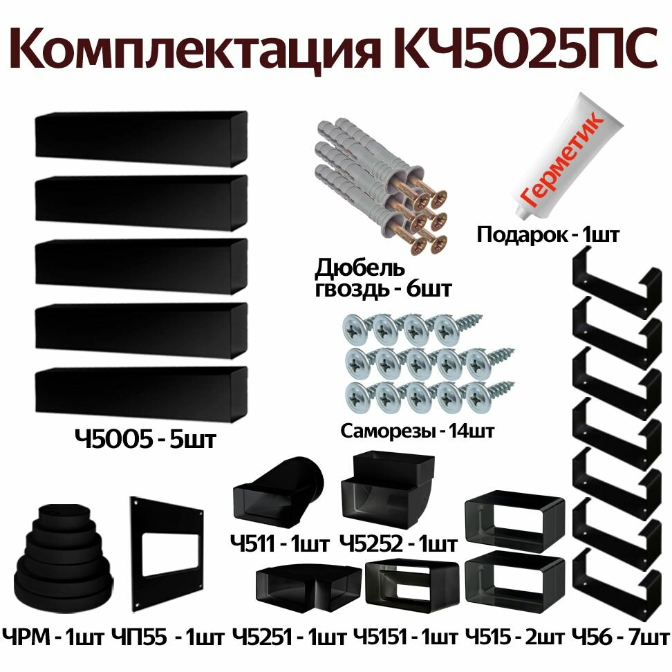 Комплект воздуховодов для кухонной вытяжки из ПВХ 55х110мм, плоские каналы, длинна 4.8м, КЧ5040СПС521