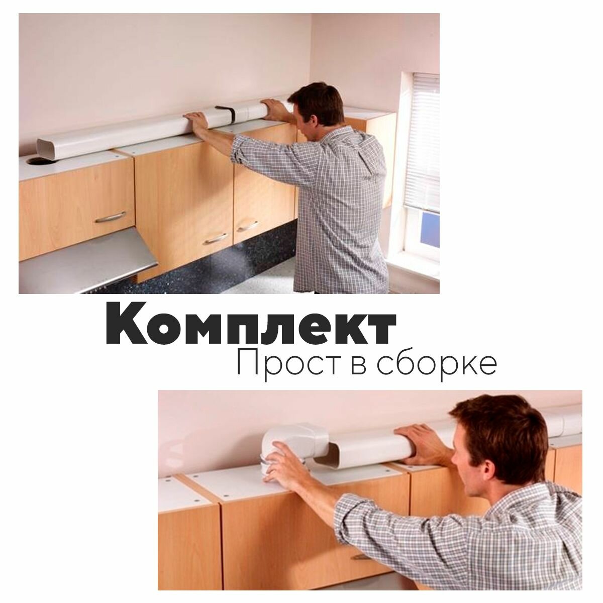 Комплект кухонной вытяжки из ПВХ d100мм, длинна 1.74м, КЧ1015