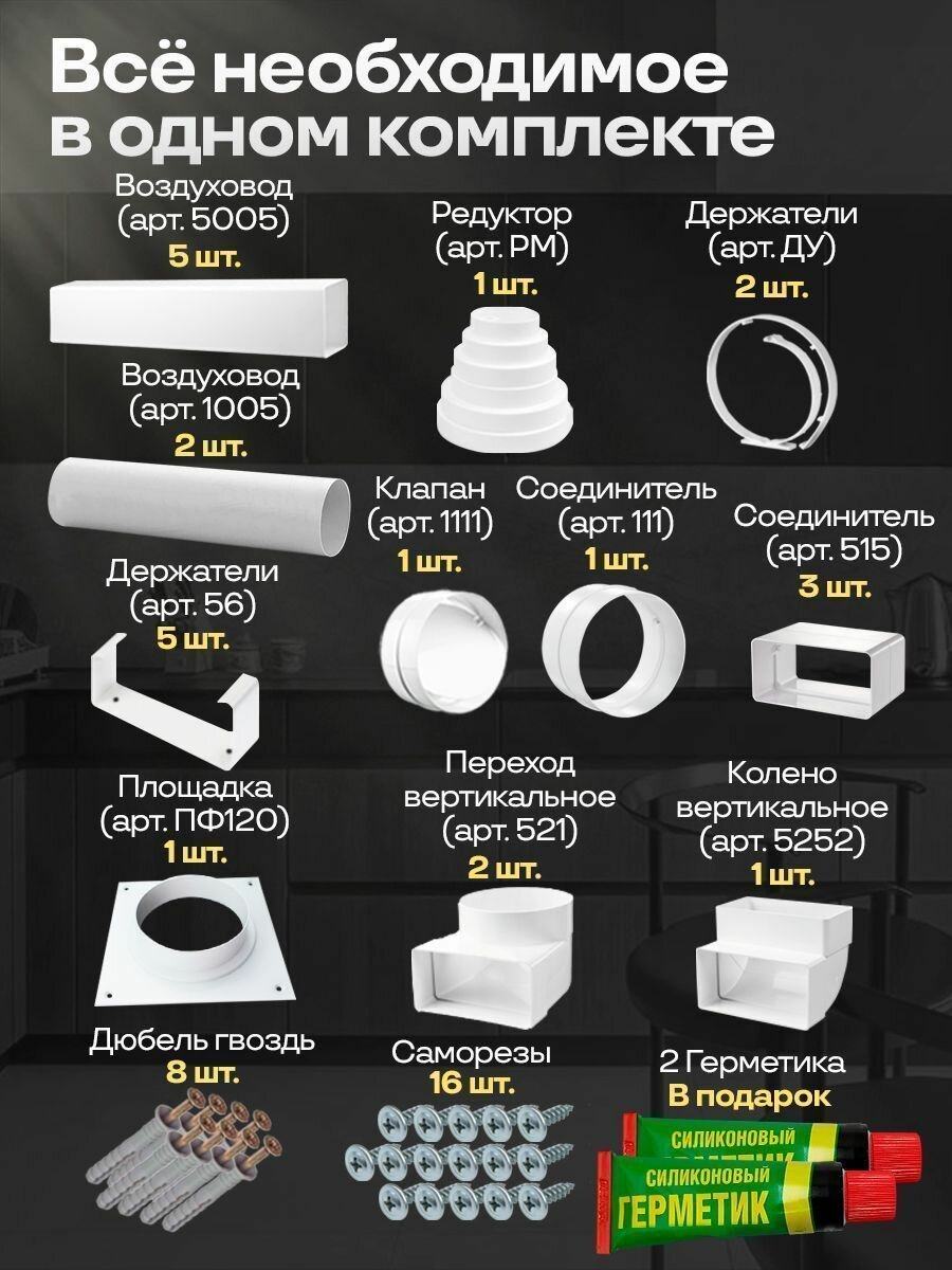 | Дополнительная информация | Комплект черный для кухонной вытяжки |