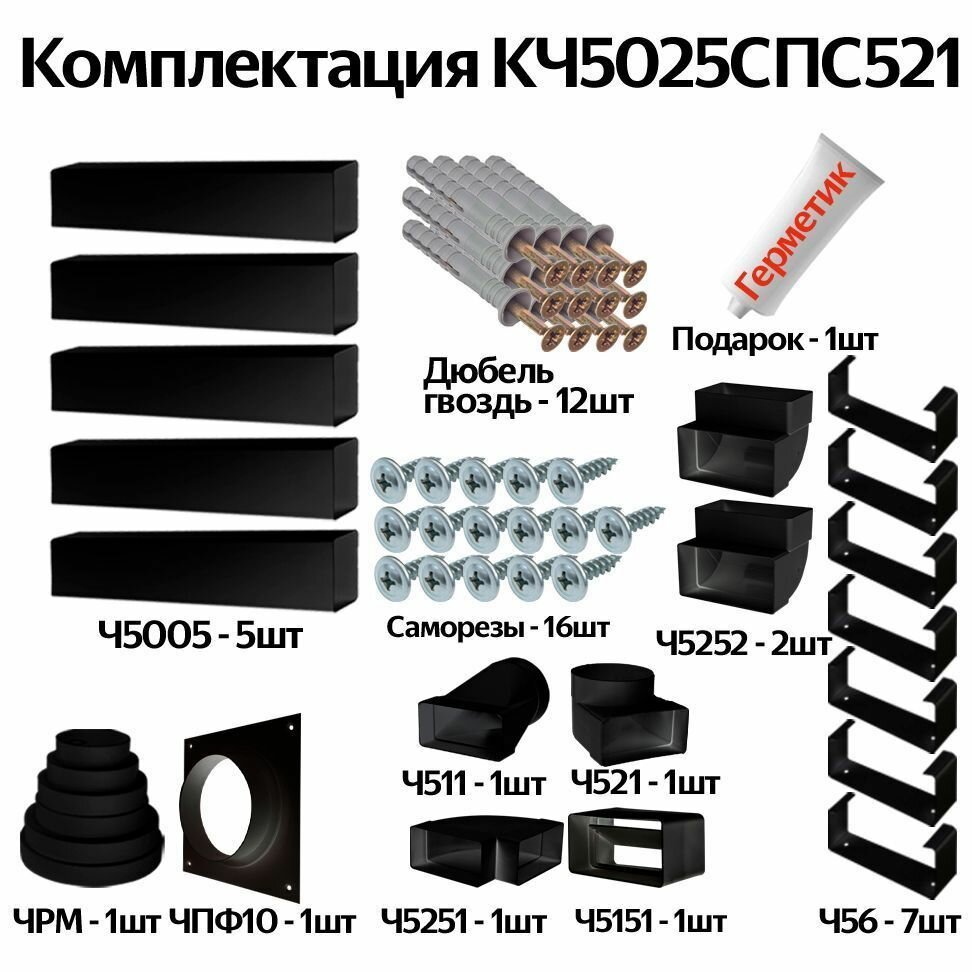 СохранитьКомплект воздуховодов для кухонной вытяжки из ПВХ 55х110мм, плоские каналы, длинна 3.29м, КЧ5025СПС521 интересное: