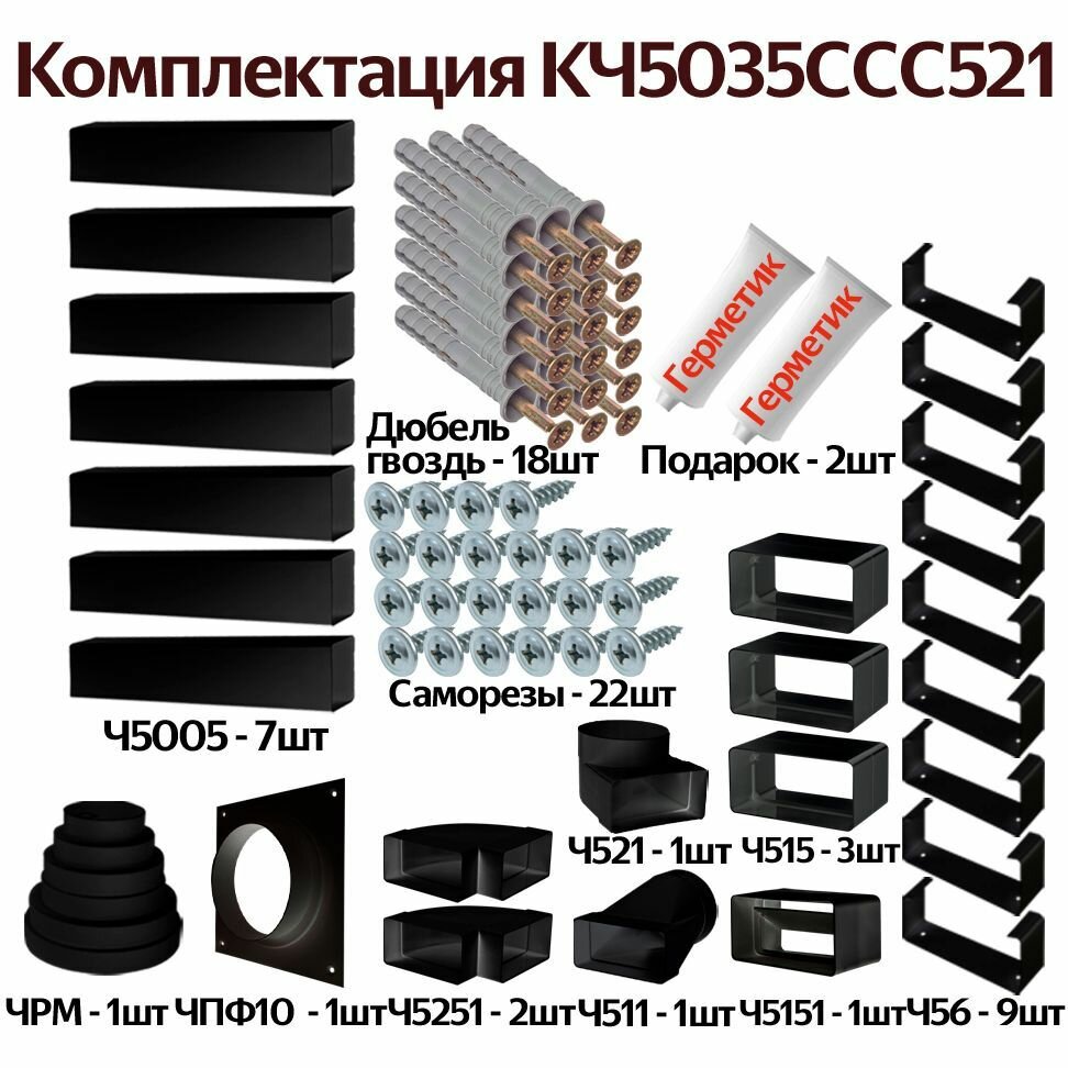 Купить Комплект воздуховодов для кухонной вытяжки из ПВХ 55х110мм, плоские каналы, длинна 4.21м, КЧ5035ССС521