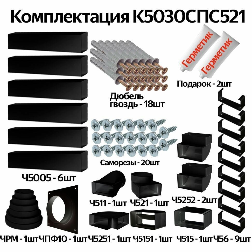 Комплект воздуховодов для кухонной вытяжки из ПВХ 55х110мм, плоские каналы, длинна 4.8м, КЧ5040СПС521