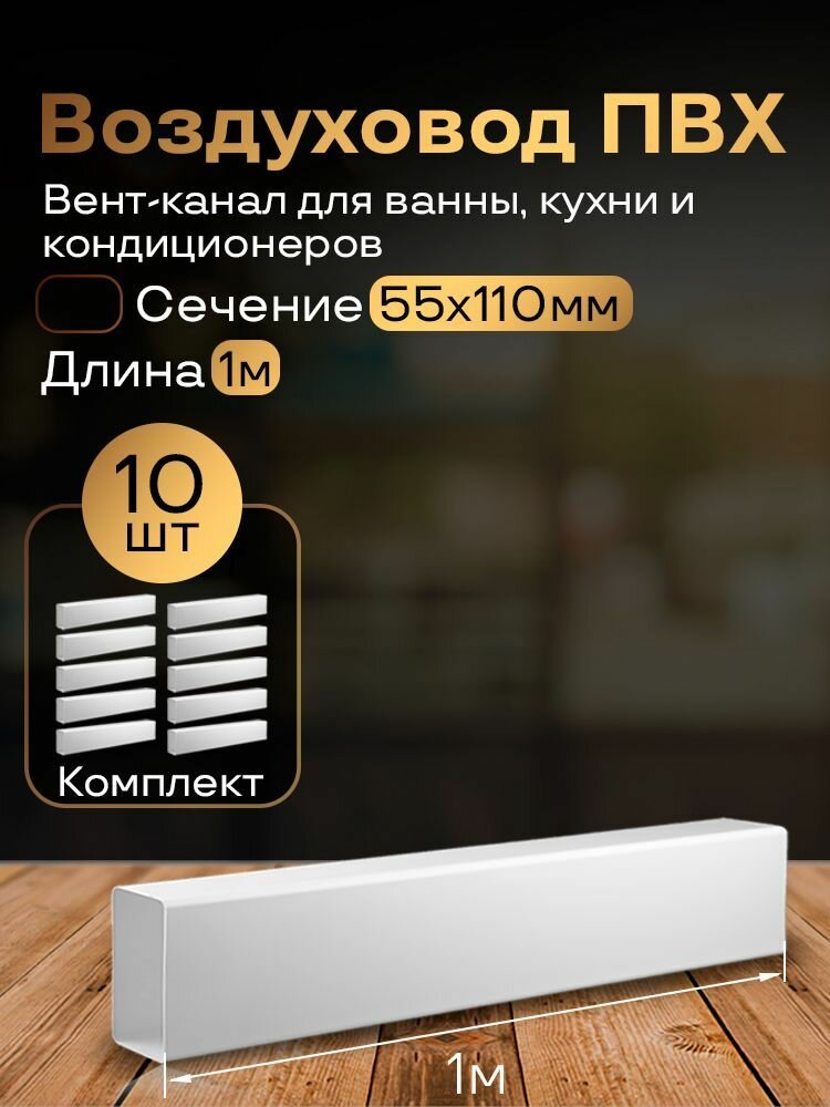 Канал вентиляционный 55 х 110 мм х 0,5 м плоский, 10 шт, 5005-10, белый, воздуховод, ПВХ
