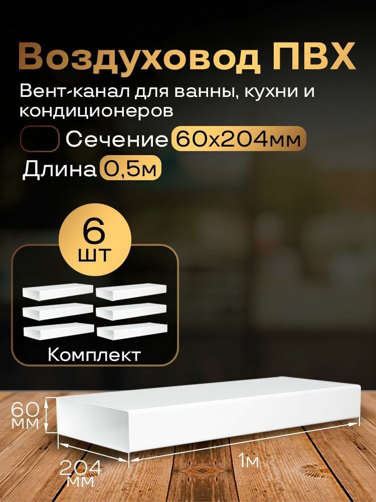 Купить Канал вентиляционный 60 х 204 мм х 1 м плоский, 6 шт, 8010, белый, воздуховод, ПВХ