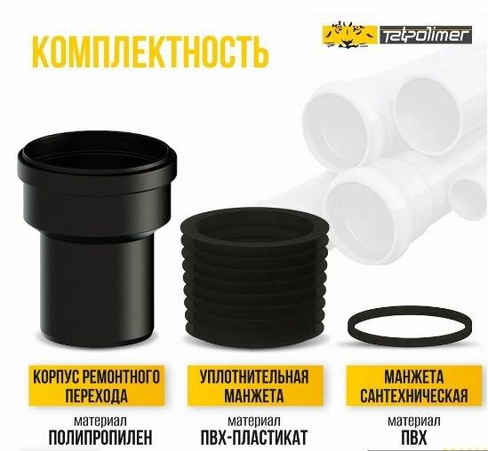 Муфта ремонтная/восстановитель раструба для канализации 110мм, чугун-пластик интересное: