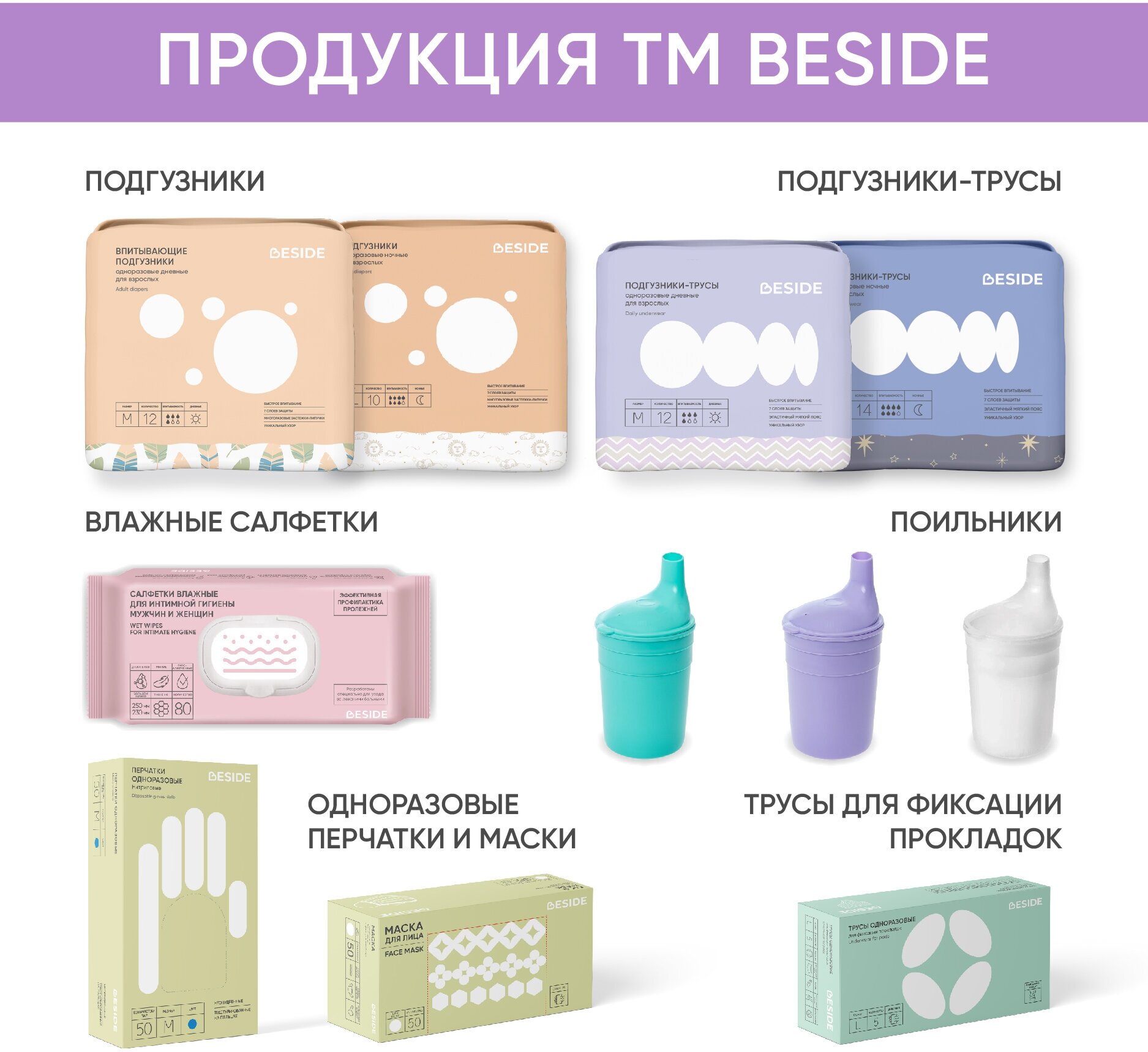 Купить Влажные салфетки BESIDE большие 25х23, 2*80шт набор антибактериальные, для интимной гигиены, полотенца