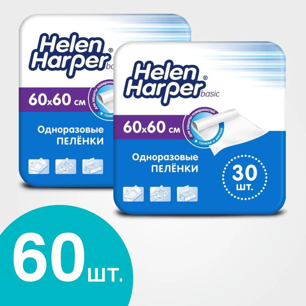 Helen Harper Basic / Хелен Харпер - одноразовые впитывающие пеленки, 60x60 см, 30 шт.