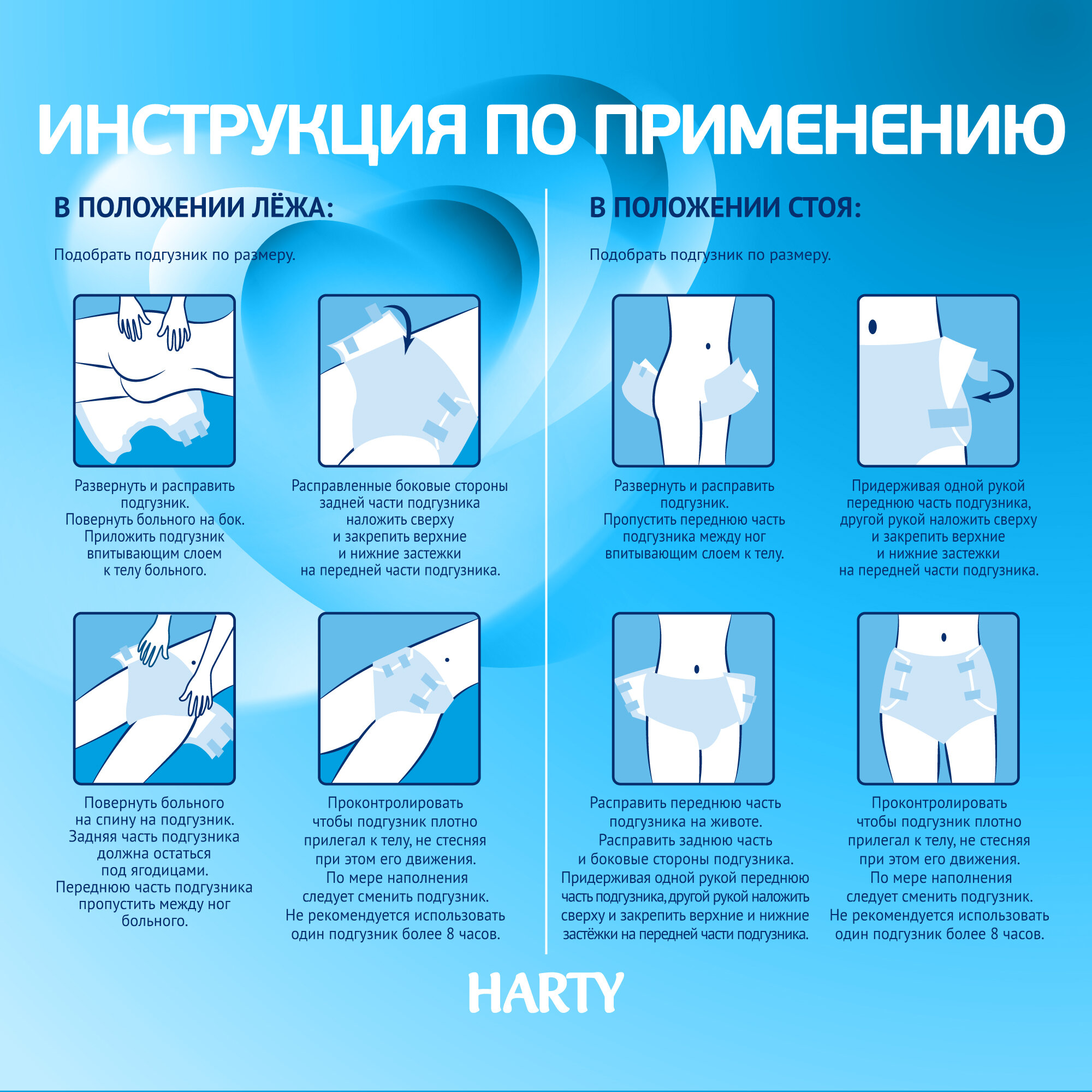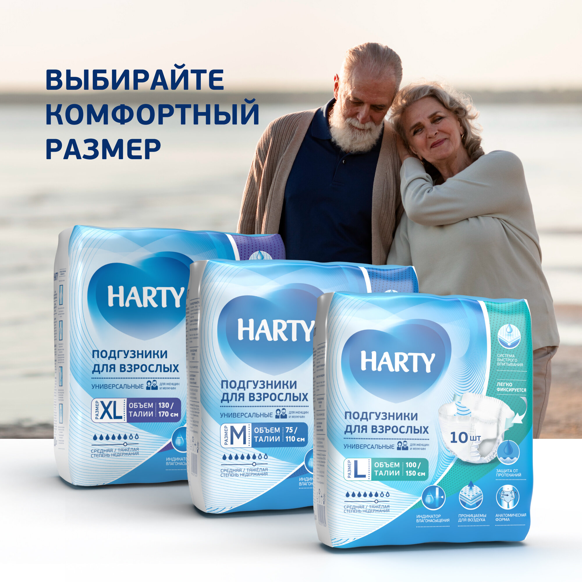 Подгузники Harty для взрослых, размер M, обхват талии 75/110 см, 10 шт.