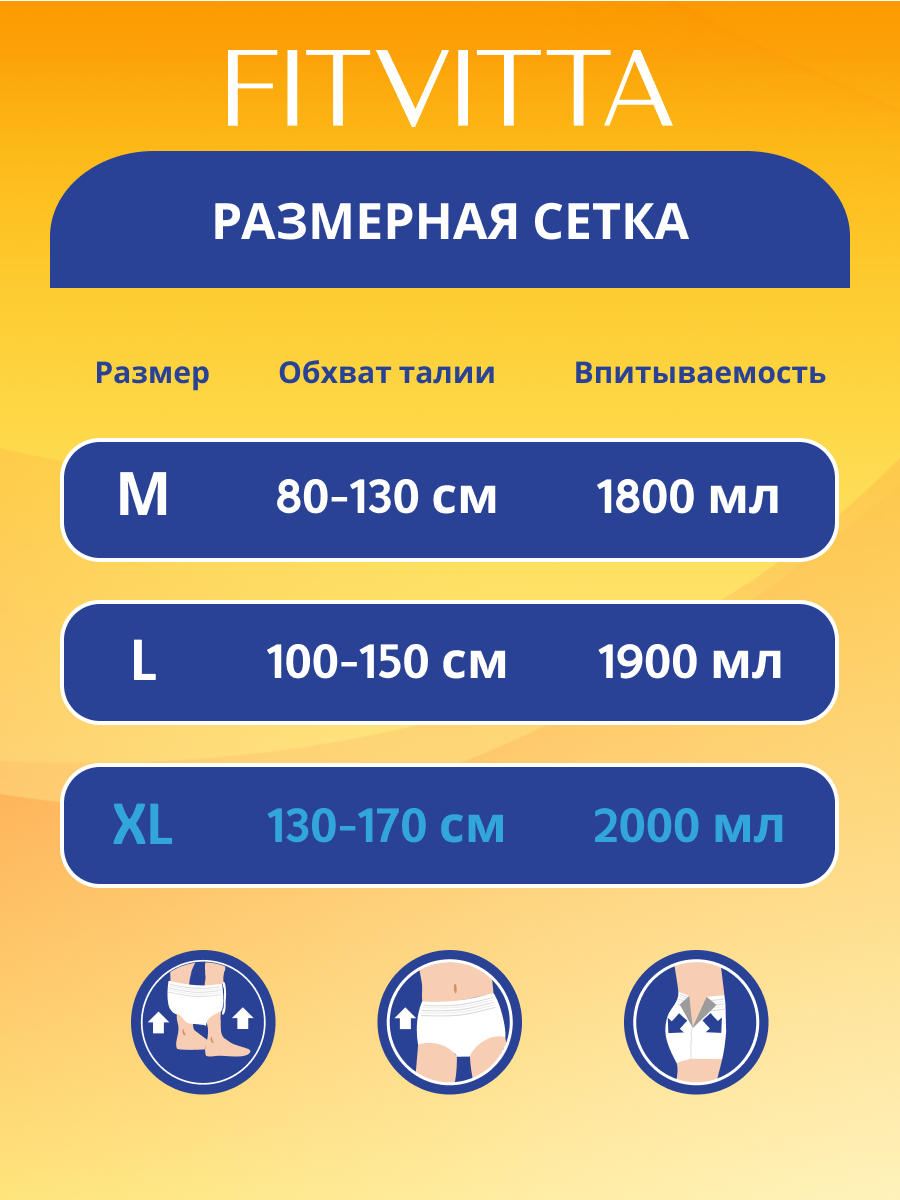 Купить Подгузники-трусики для взрослых FITVITTA, размер XL, обхват талии до 170 см, 10 шт. в упаковке