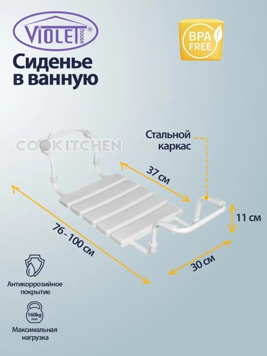 Сиденье в ванну раздвижное Violet, пластиковое, металлический каркас, белое интересное: