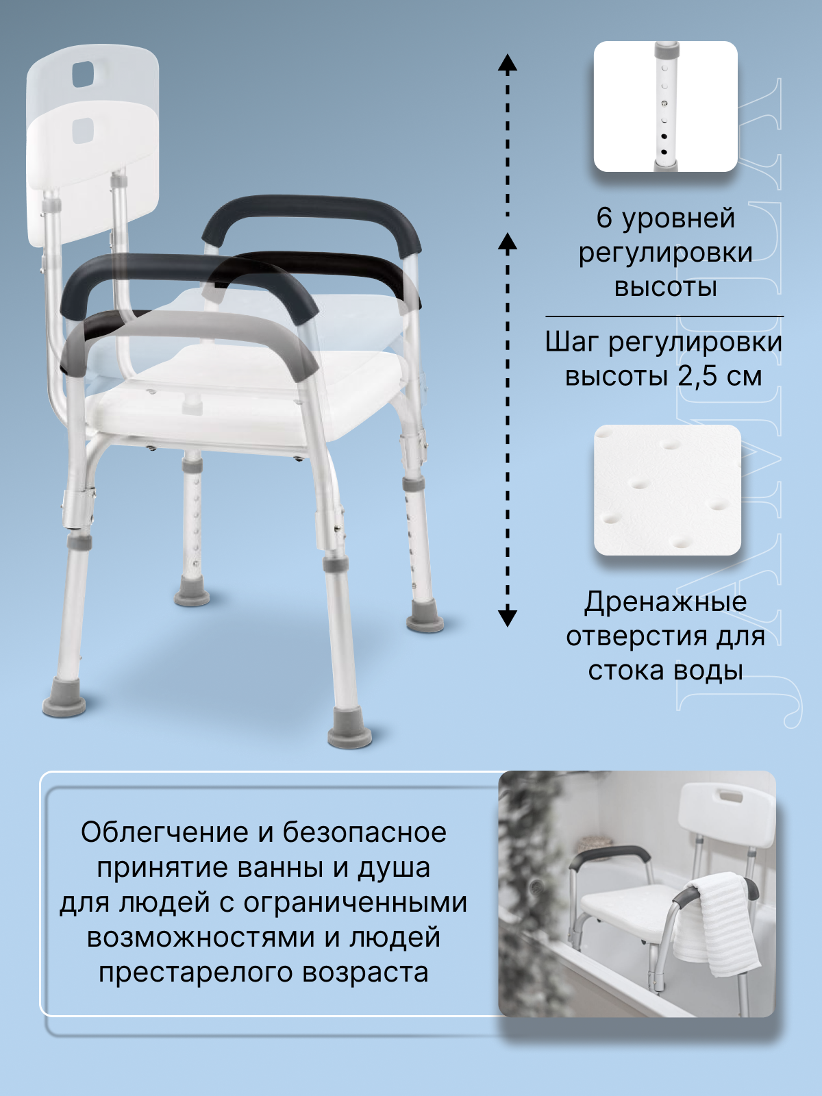 Стул для ванны и душа с подлокотниками и спинкой интересное: