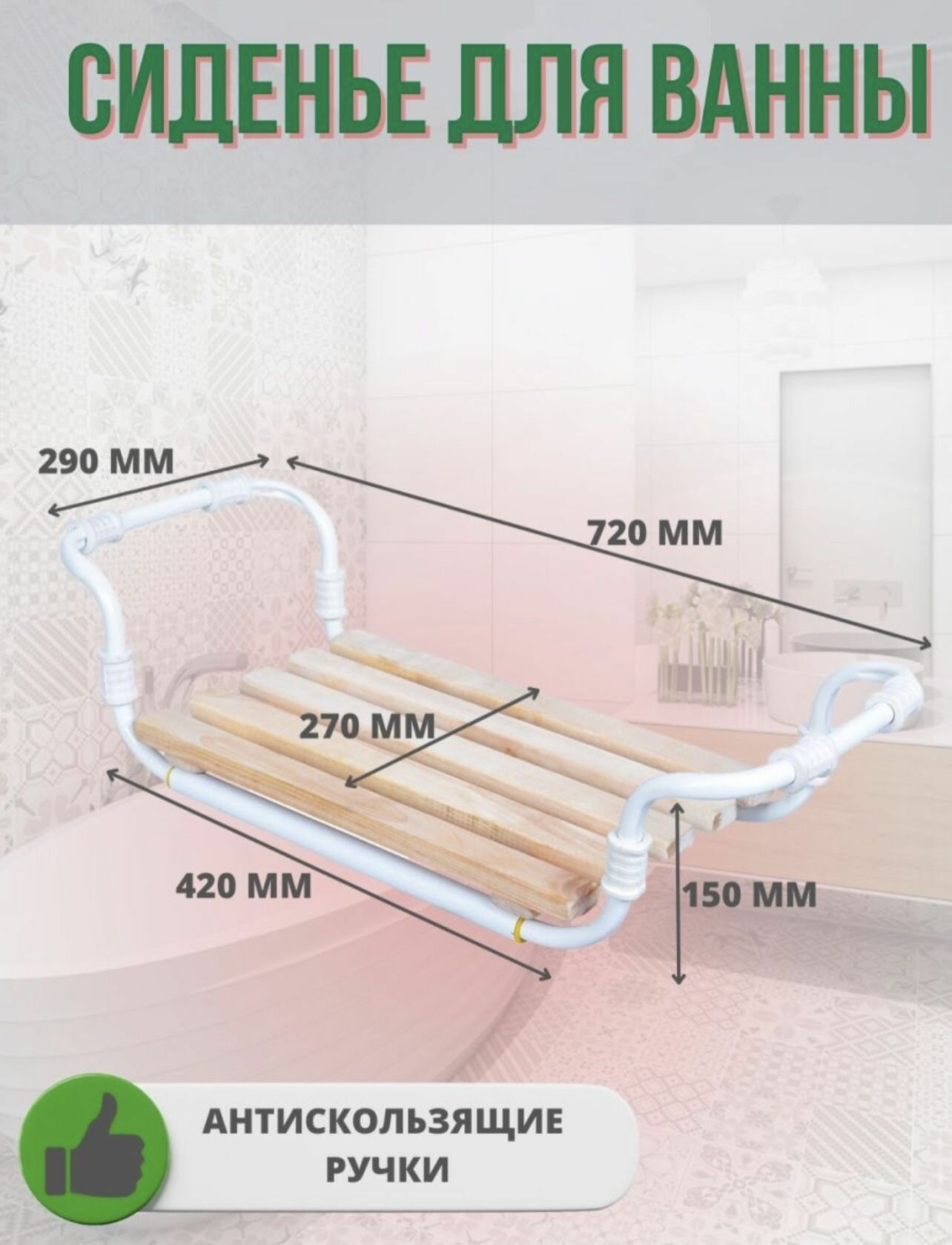| Дополнительная информация | размер сиденья 420 х 270 мм, регулируется по ширине ванны от 530 до 670мм |