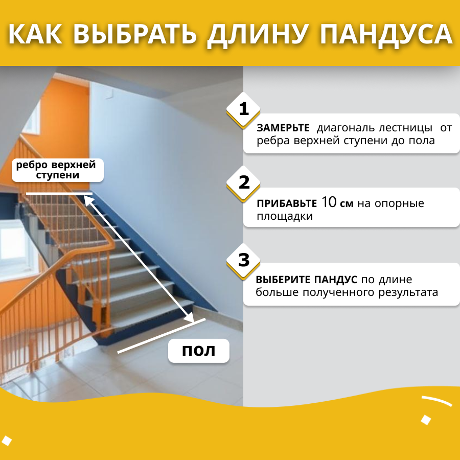 Пандус телескопический 2-секционный Ретайл Антислип 200 см, жёлтый (рабочая длина 190 см + 2 опор.площадки по 5 см), переносной для детских колясок интересное: