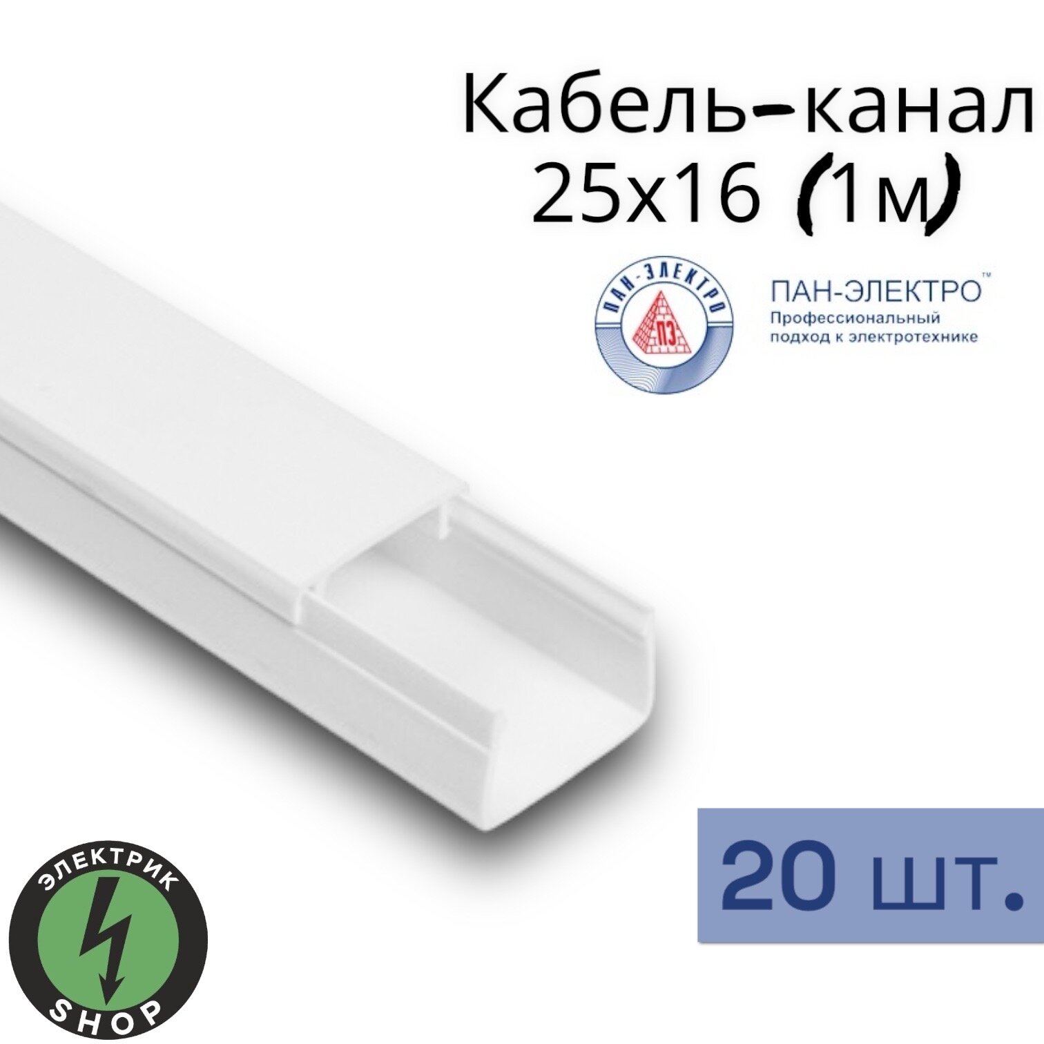 Кабель-канал ПВХ 25х16 (1м) ПАН-Электро белый ( 20 штук )
