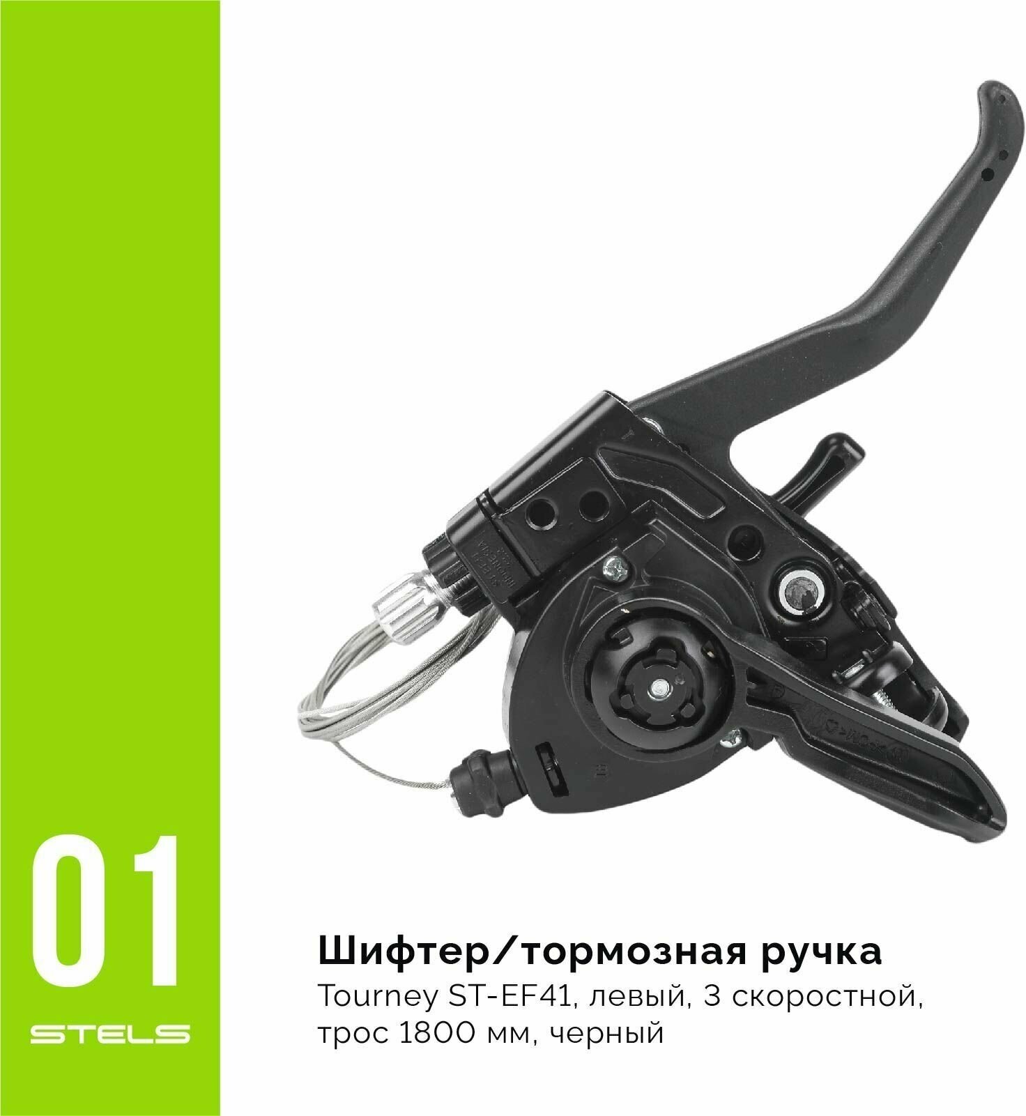 Шифтер/тормозная ручка Tourney ST-EF41, левый, 3-х cкоростной, трос 1800 мм, черный HIT+ интересное: