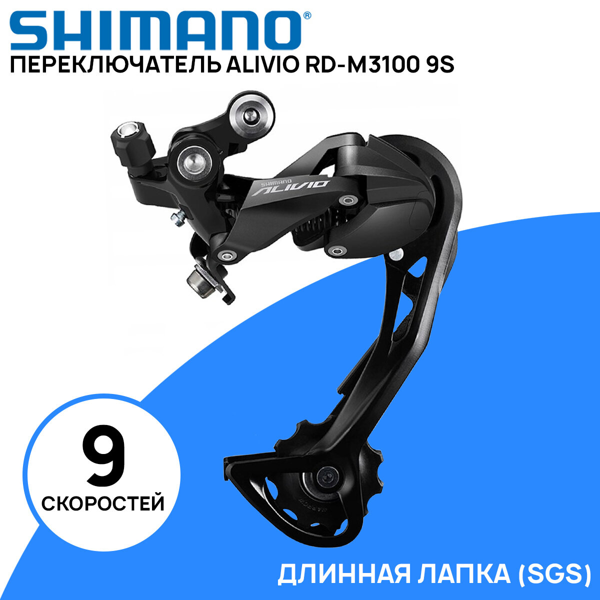 Переключатель задний Shimano Alivio RD-M3100 на 9 скоростей, SGS (длинная лапка), черный интересное:
