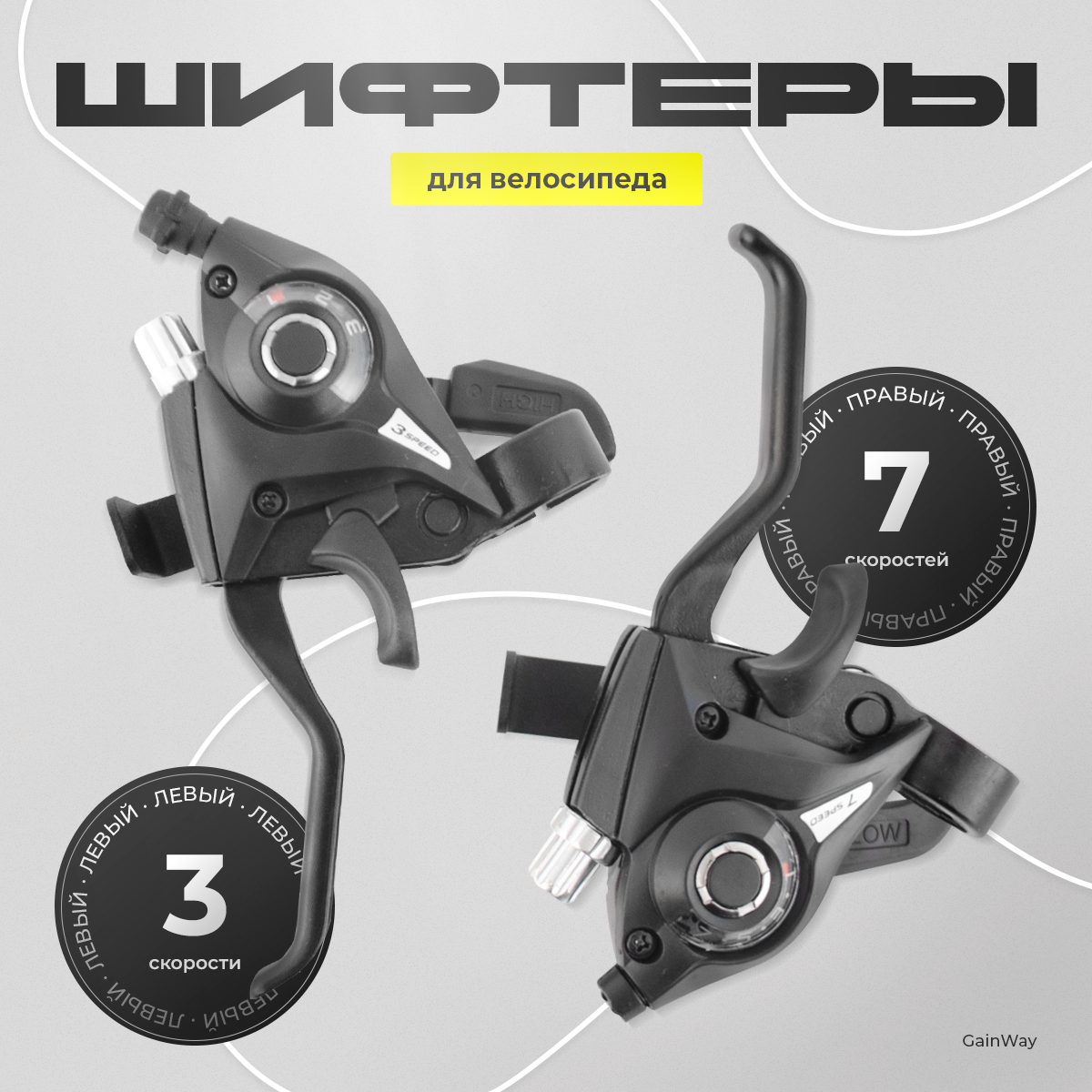 Купить Ручка переключения (грип-шифтер) GW-24020-08 левая 3 скорости, правая 7скоростей