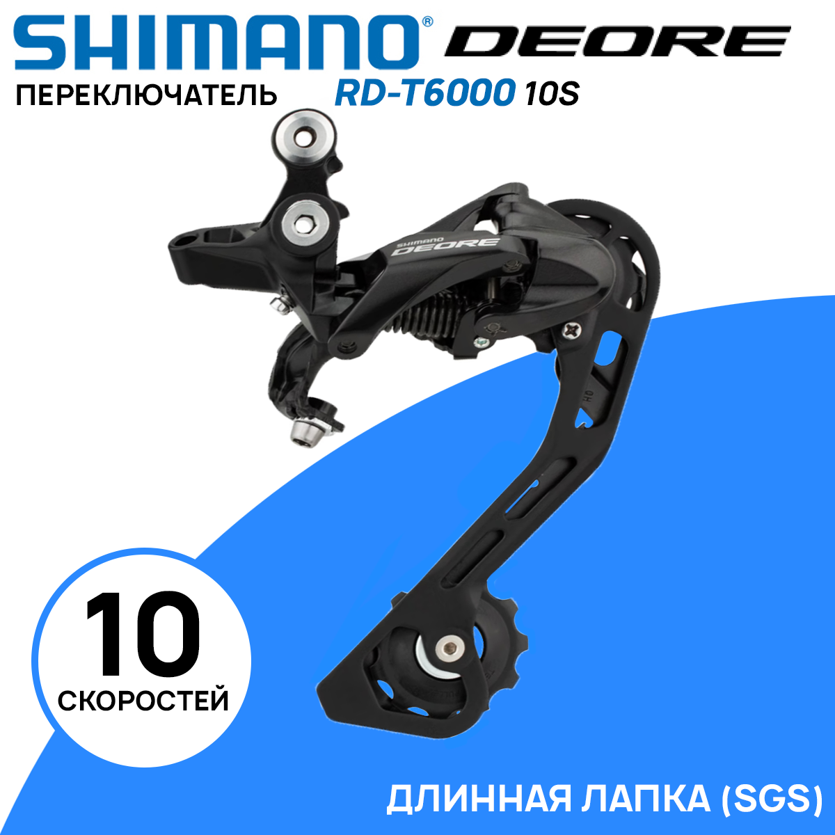 Купить Переключатель задний Shimano Deore RD-T6000 на 10 скоростей, SGS (длинная лапка), черный (без фирменной коробки)
