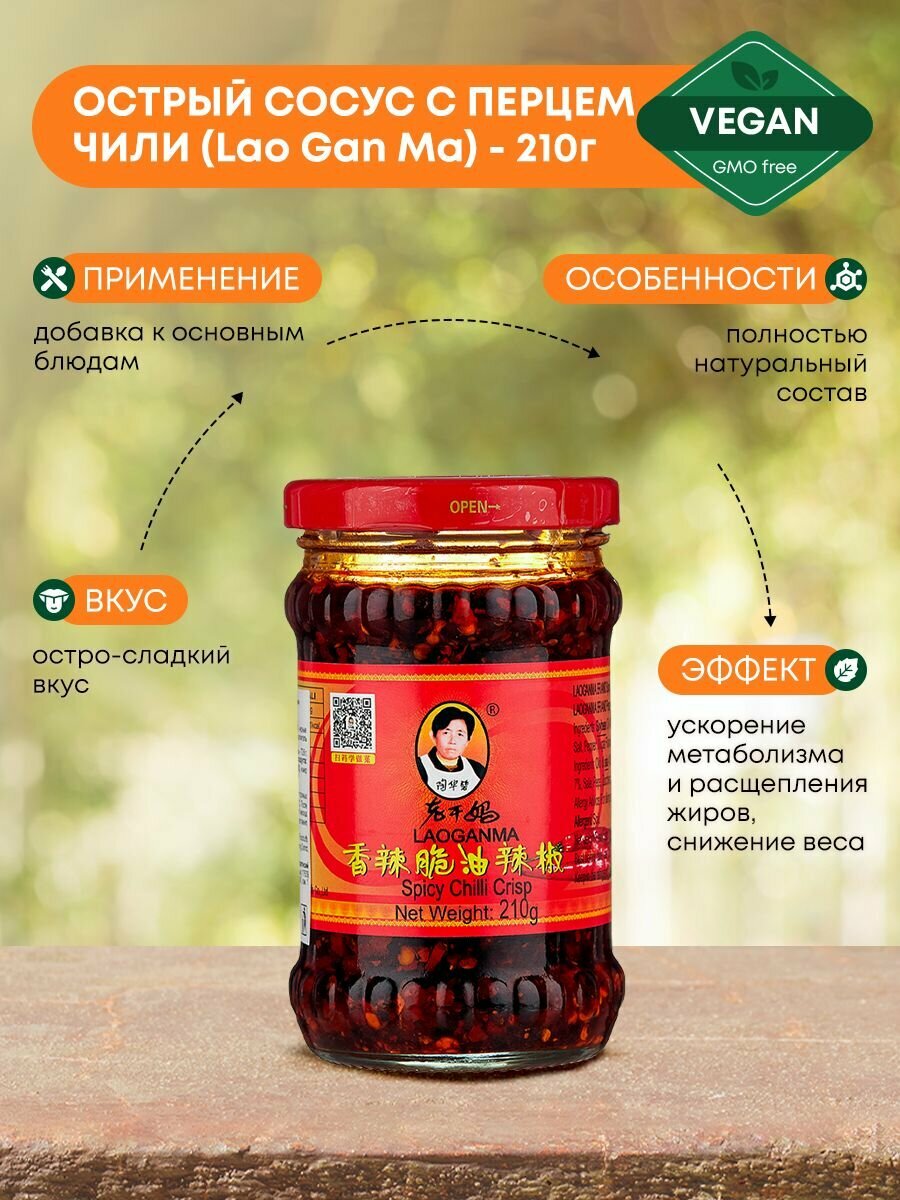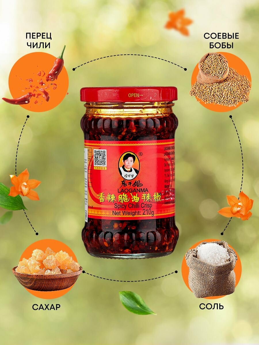 Соус Lao Gan Ma острый с хрустящим перцем чили, 210 г интересное: