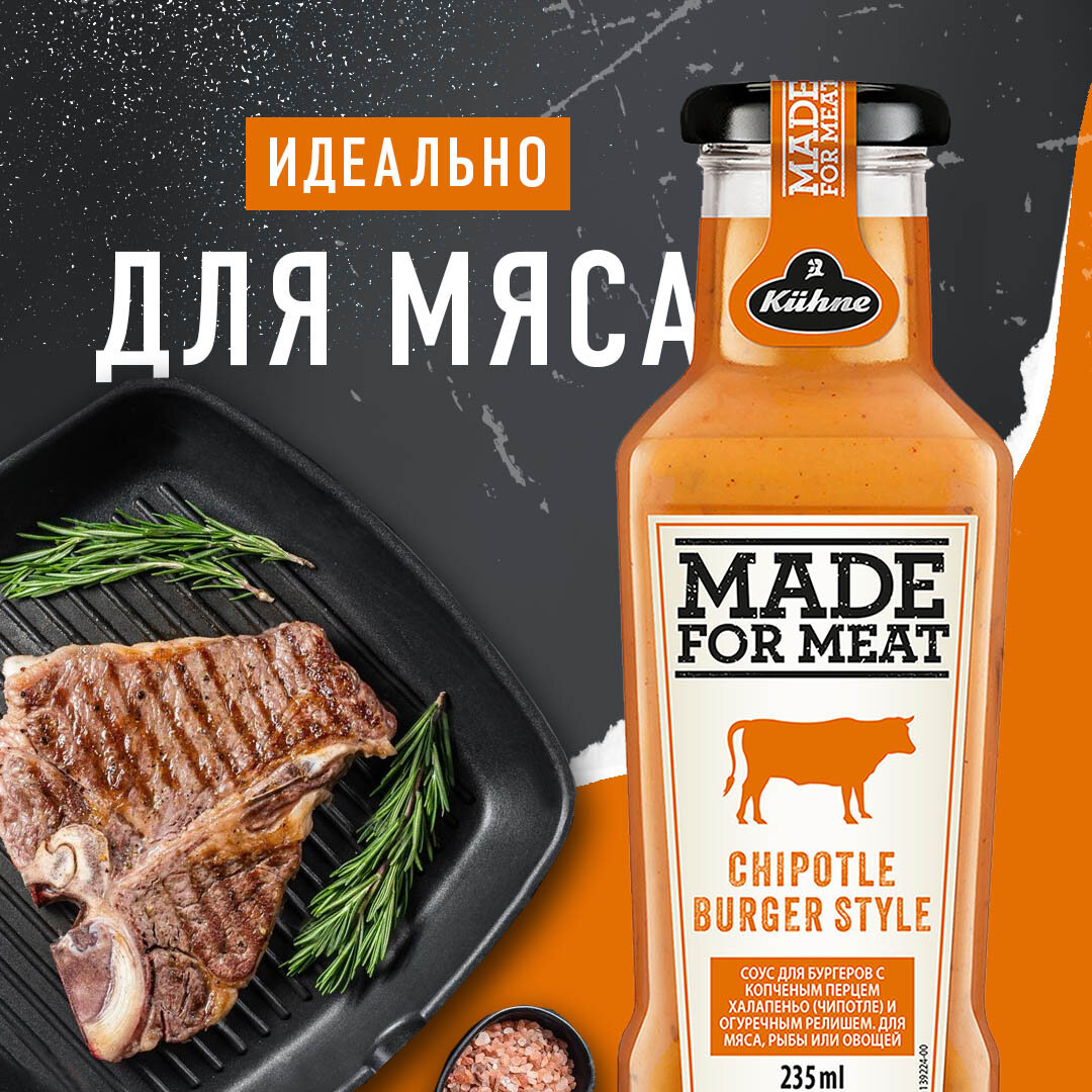 Соус Kuhne Made for Meat Chipotle Burger Style для бургеров с копчёным перцем халапеньо чипотле, 235 мл интересное: