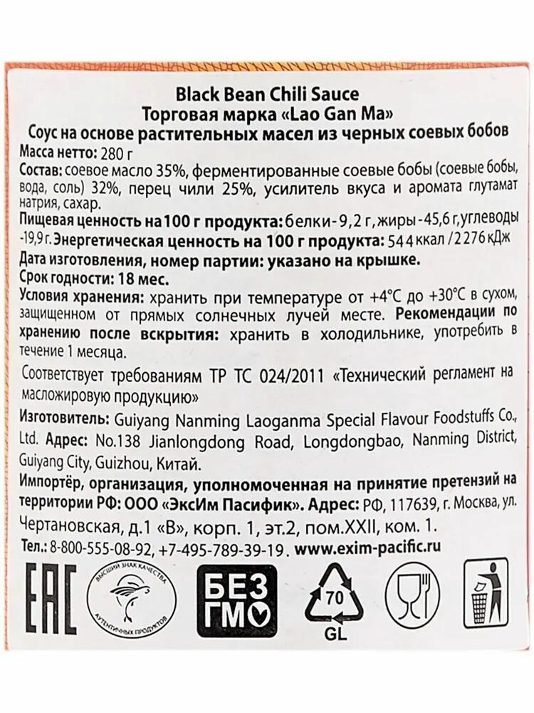 Соус Lao Gan Ma на основе растительных масел из черных соевых бобов 280 г интересное: