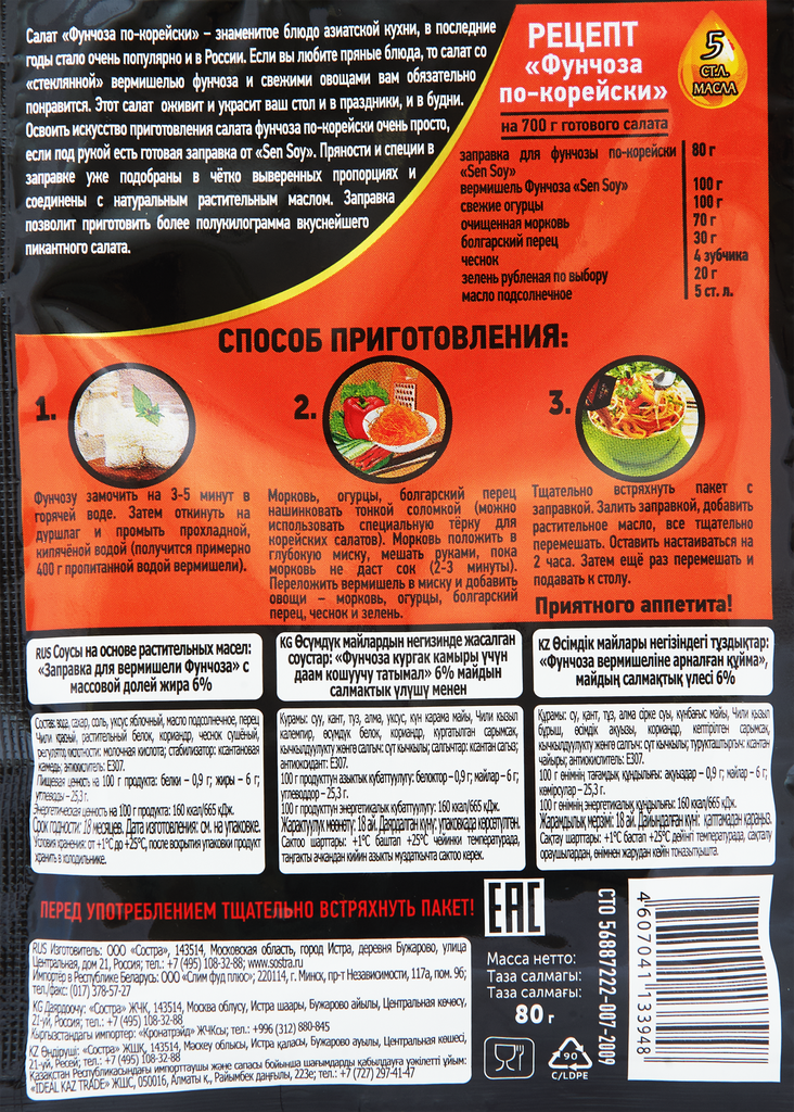 Корейская заправка для фунчезы SEN SOY, 80 г интересное: