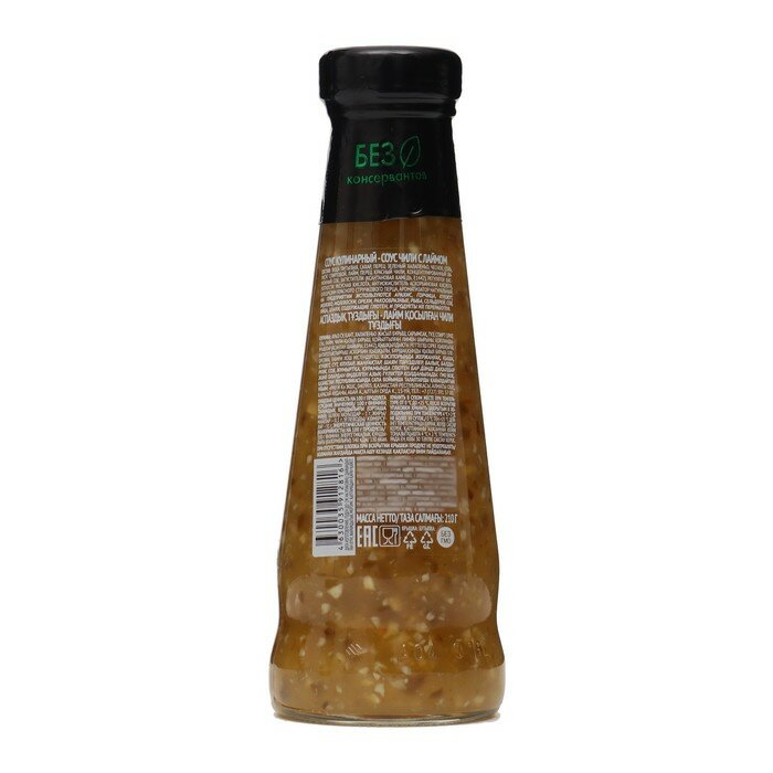 | Состав | Вода питьевая, сахар, перец зеленый халапеньо, чеснок, соль, уксус спиртовой, лайм, перец красный чили, концентрированный лимонный сок, загустители (ксантановая камедь, Е1442), регулятор кислотности уксусная кислота, антиокислитель аскорбиновая кислота, олеорезин красного стручкового перца, ароматизатор натуральный. На предприятии используются арахис, горчица, кунжут, молоко, моллюски, орехи, ракообразные, рыба, сельдерей, соя, яйца, злаки, содержащие глютен, и продукты их переработки. |