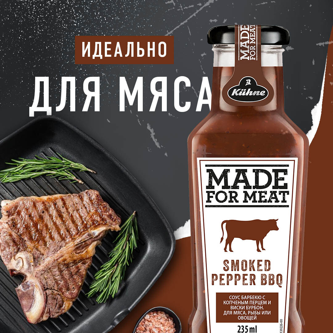 Соус Kuhne "Made for Meat" Smoked Pepper BBQ томатный барбекю с копченым перцем 235 мл интересное: