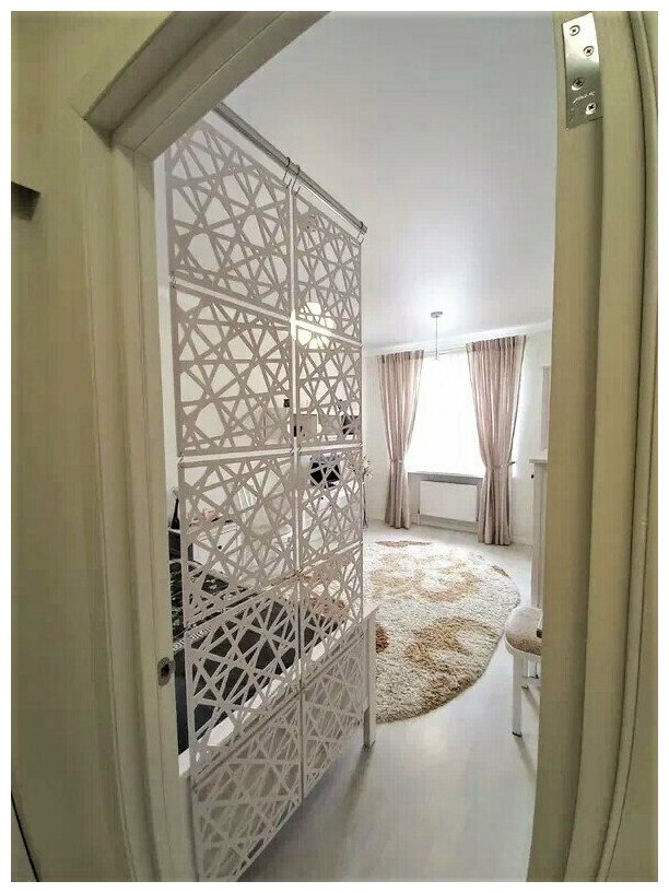 СохранитьШирма перегородка для зонирования комнаты. Узор Кристалл. Материал ПВХ . 250х80. 12 панелей. Настенное крепление. интересное:
