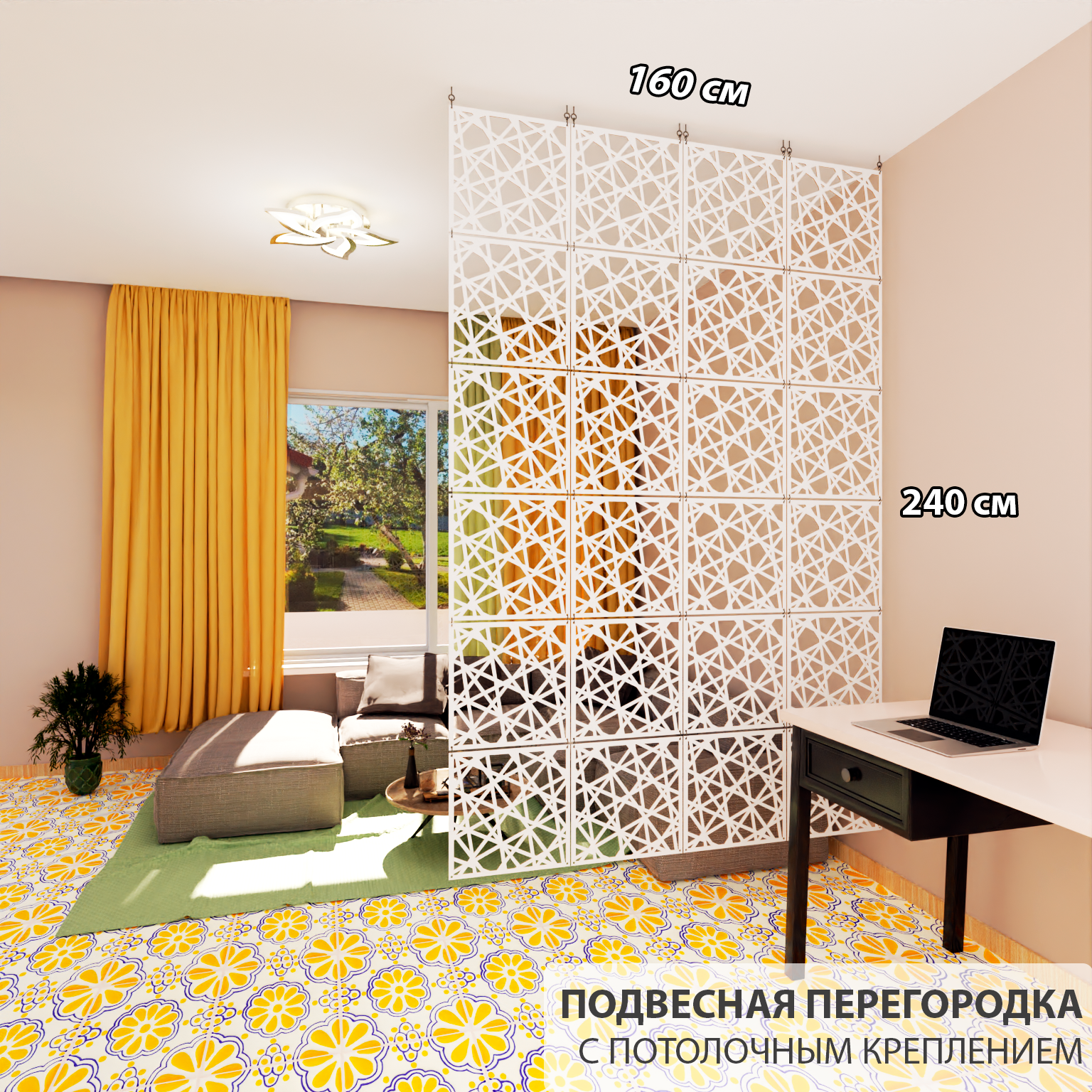 Ширма подвесная модульная перегородка для зонирования комнаты 240х160. Материал ХДФ 4 мм. 24 панели. Потолочное крепление